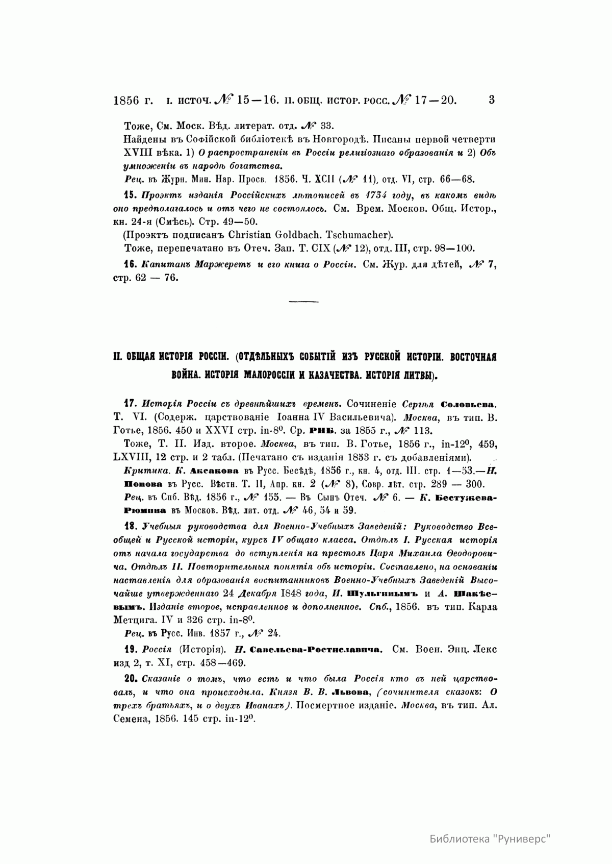 Русская историческая библиографiя. Годъ 1856
