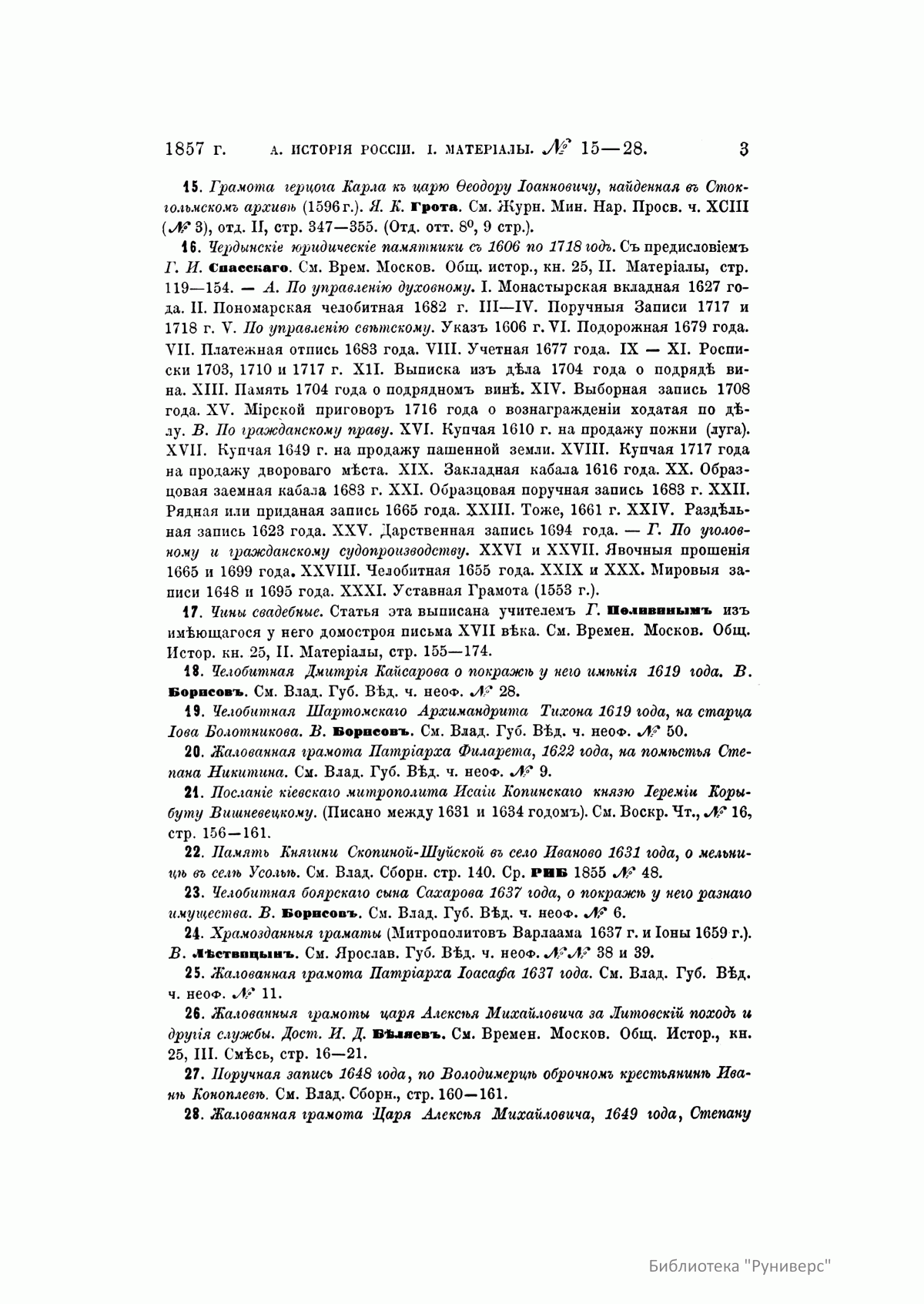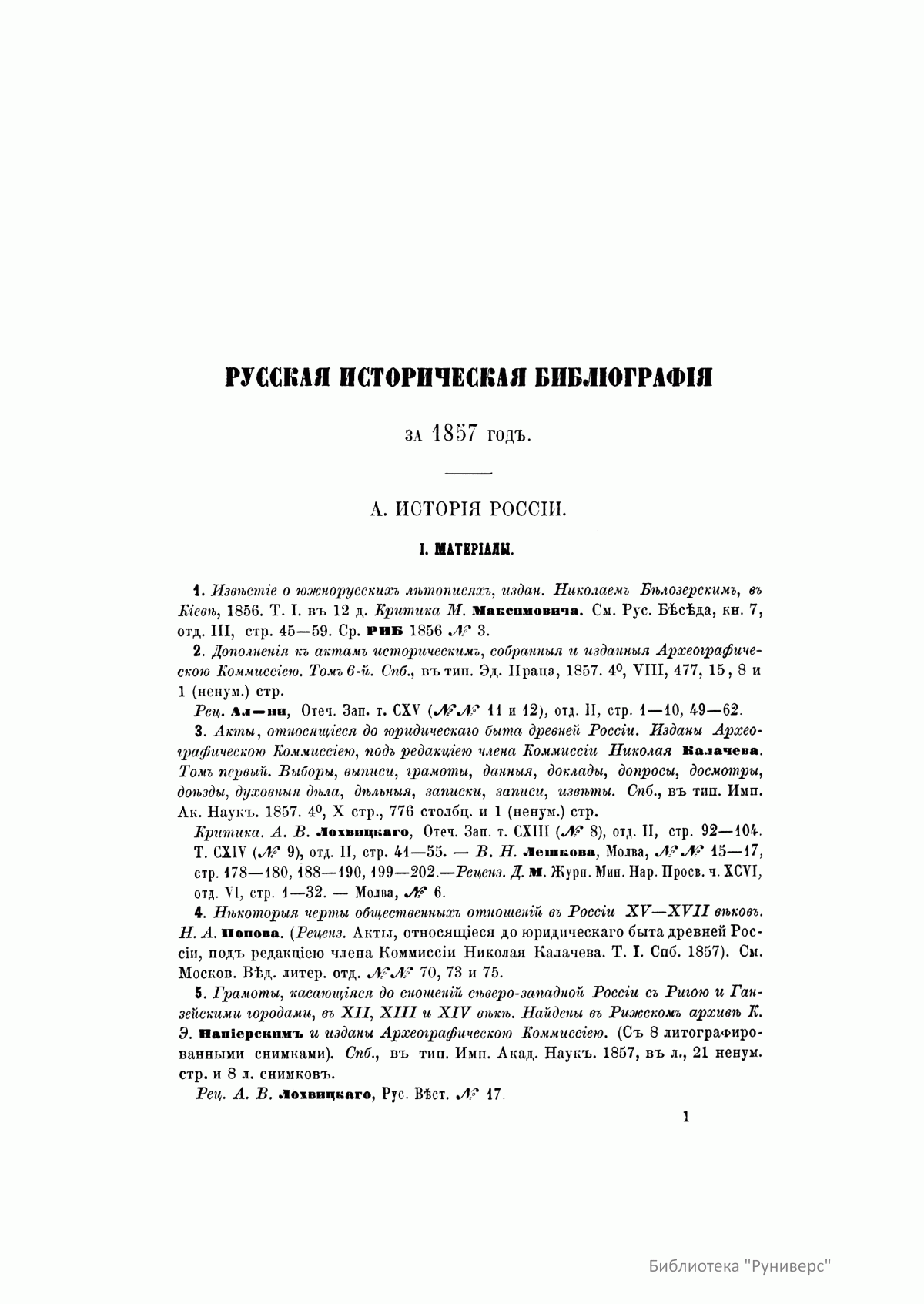 В десяти томах «Русской исторической библиографии» заключается описание свыше 44 000 книг, карт, периодических изданий, статей из журналов и газет по русской и всеобщей истории. Кроме этого, богато представлена литература о Крымской войне 1853–1856 гг., реформе 1860-х гг., польском восстании 1863–1864 гг. и о других событиях.