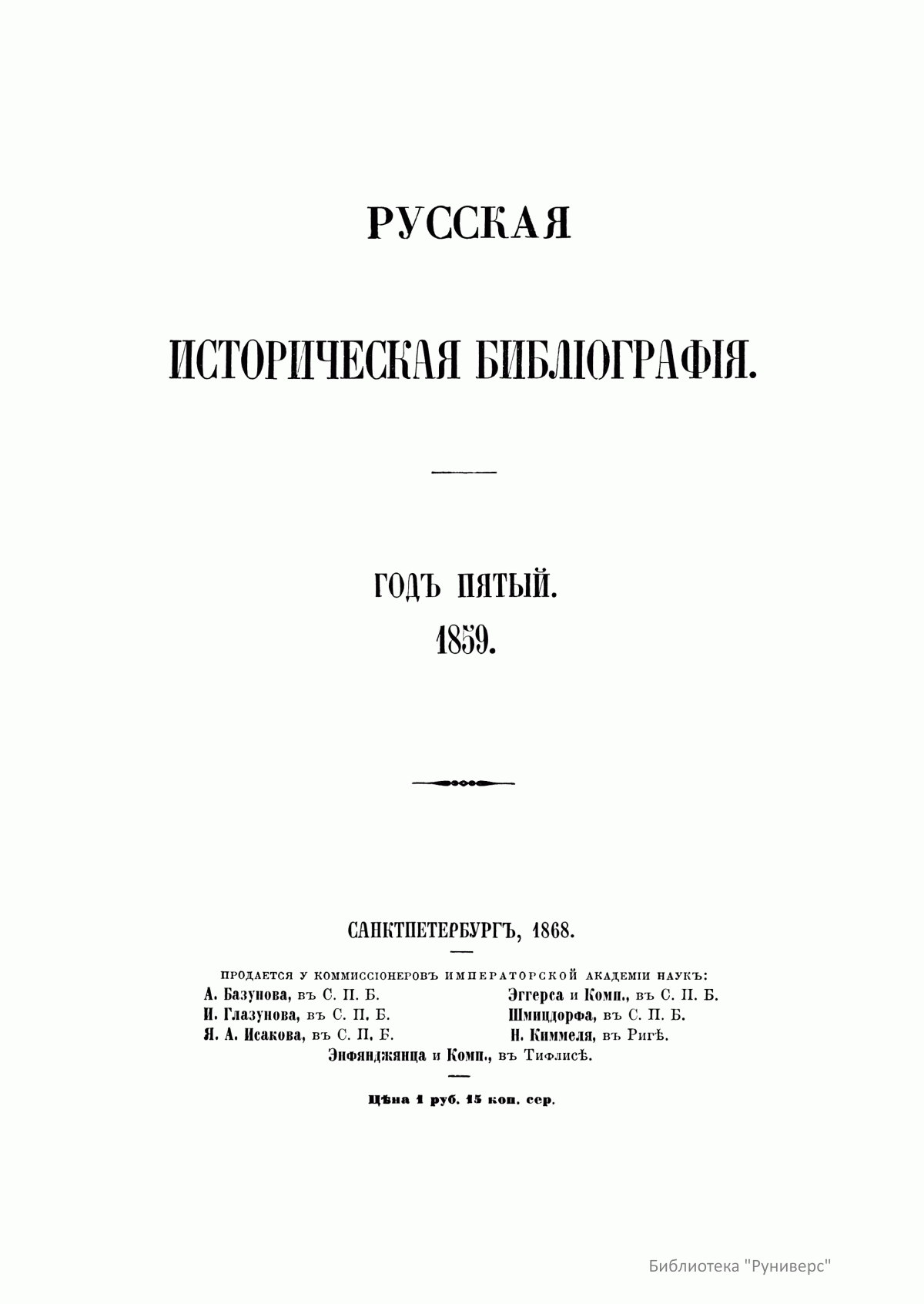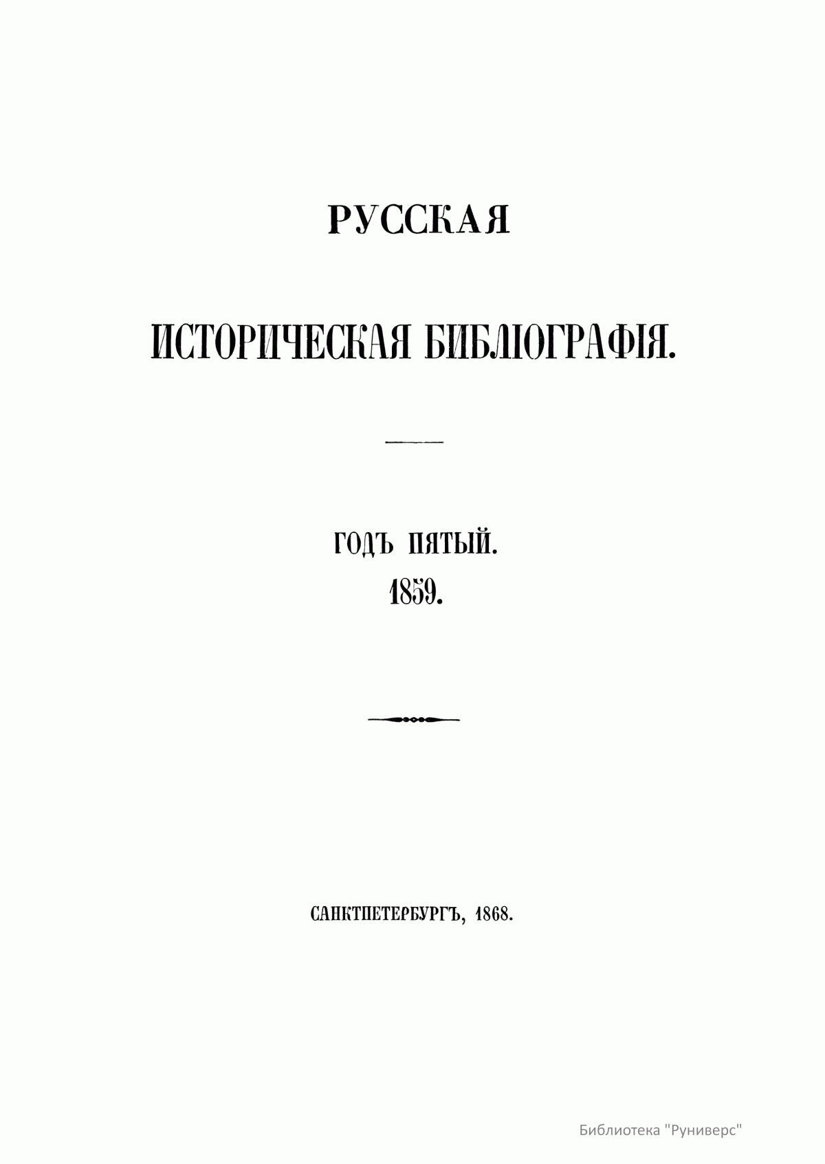 Русская историческая библиографiя. Годъ пятый. 1859