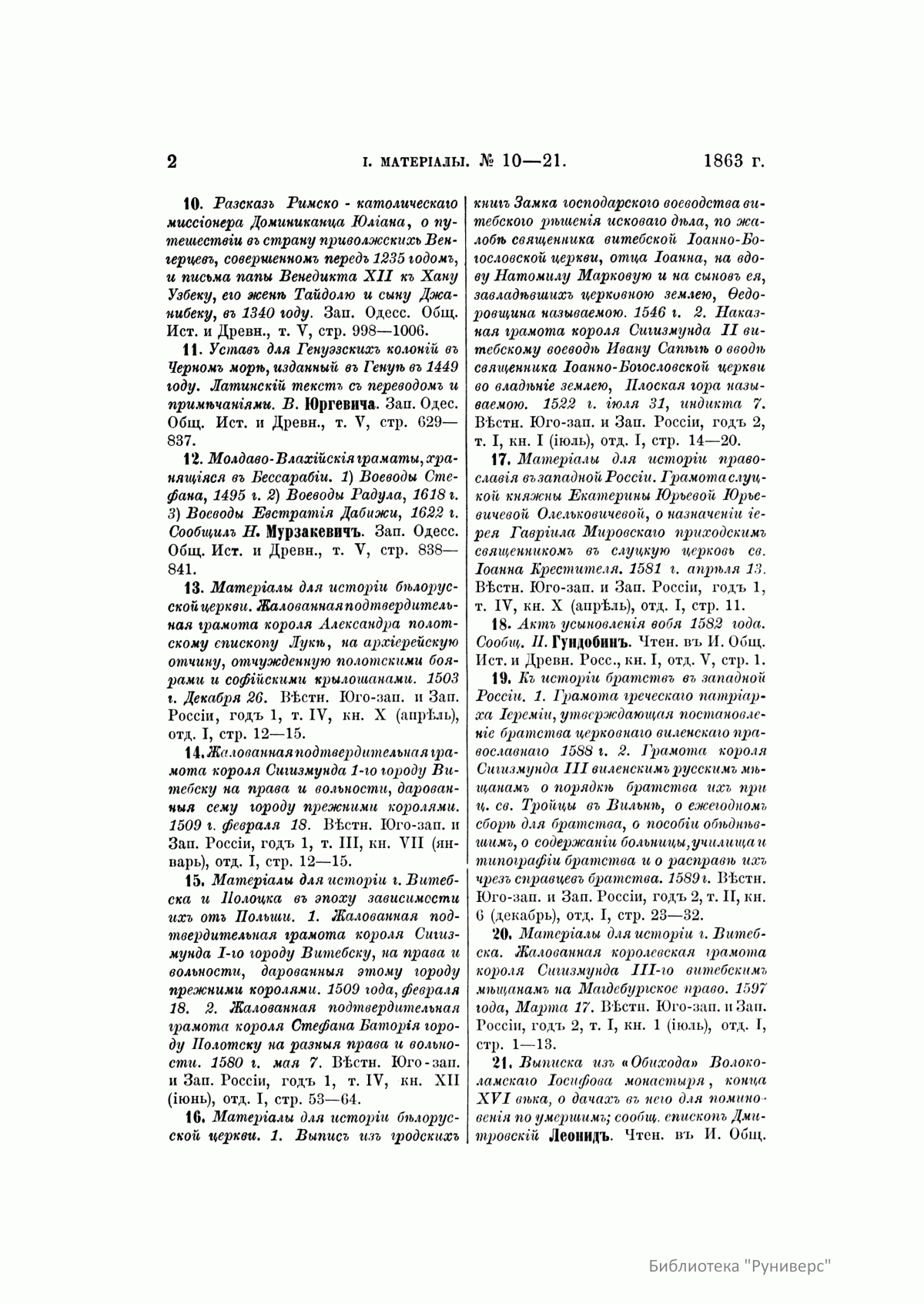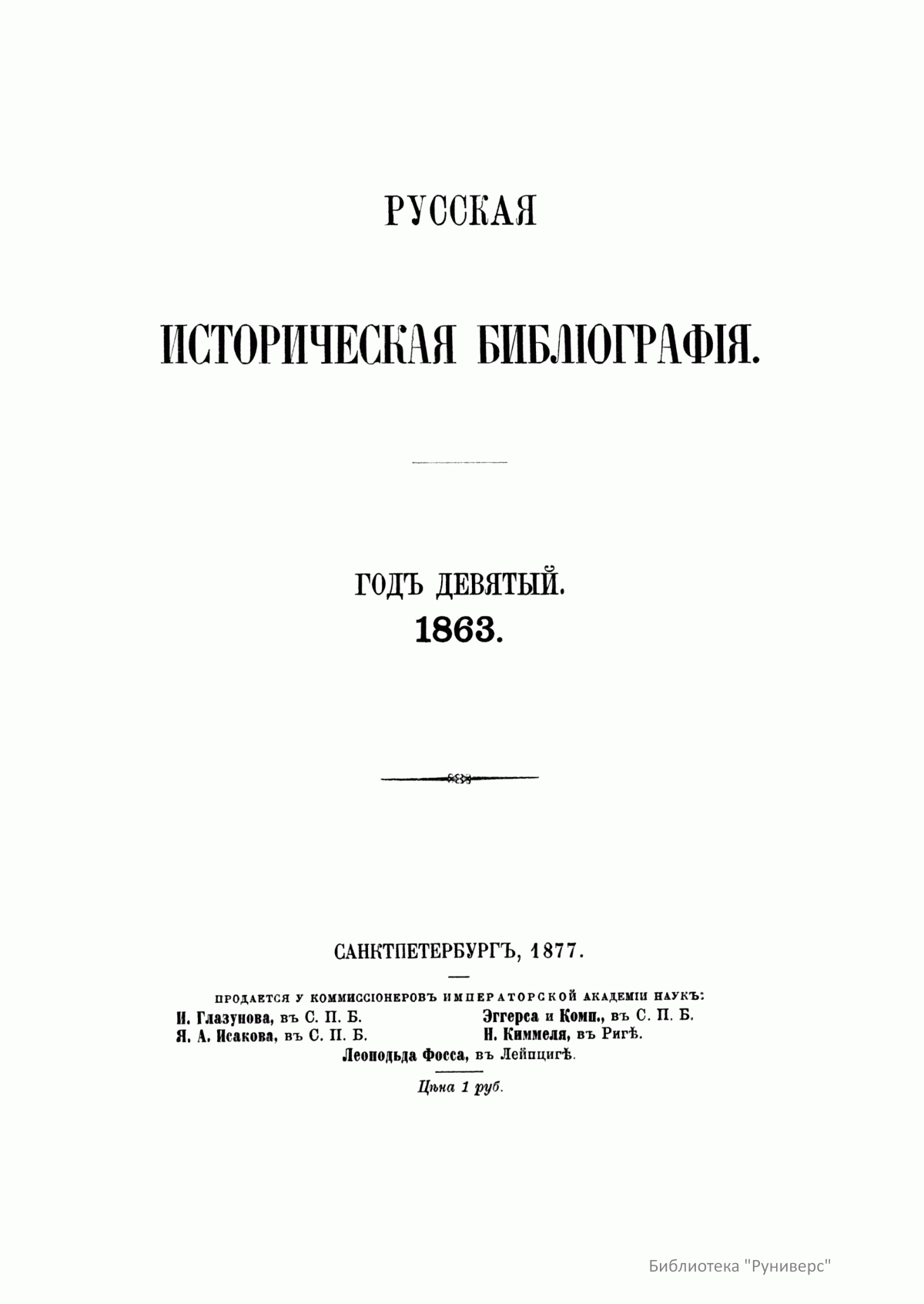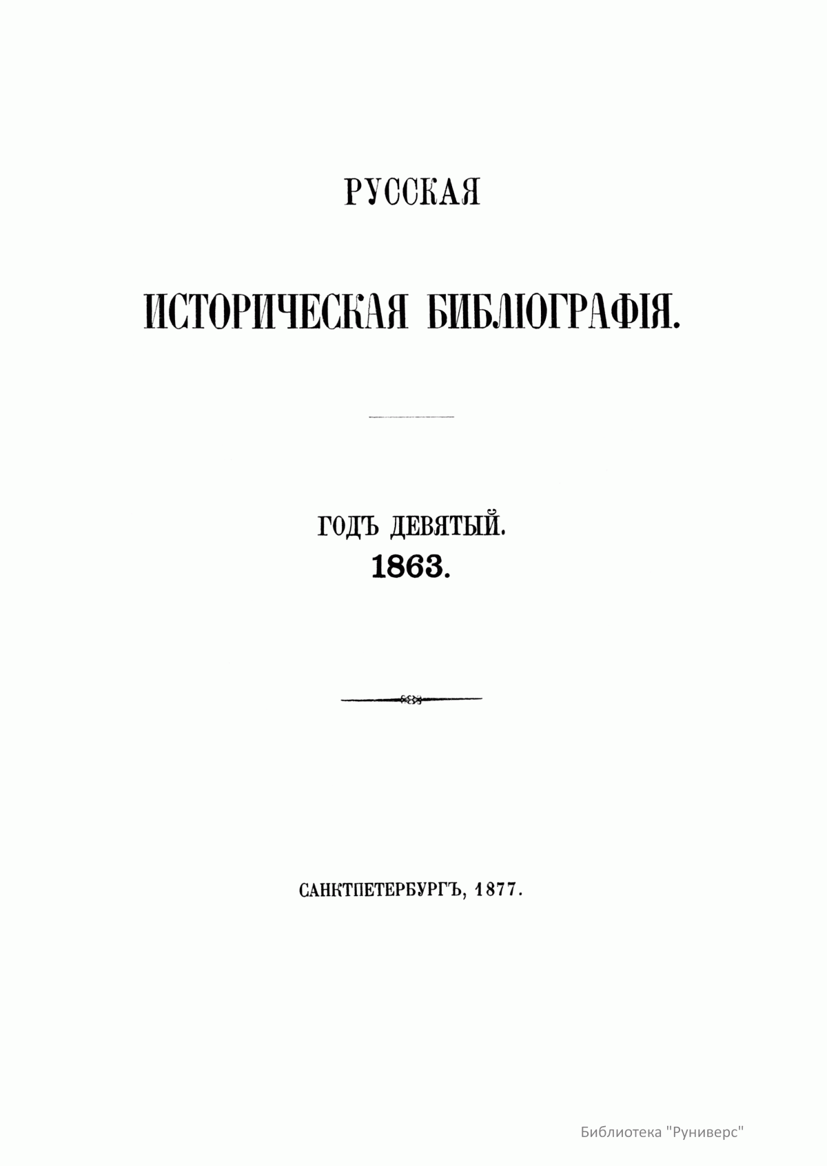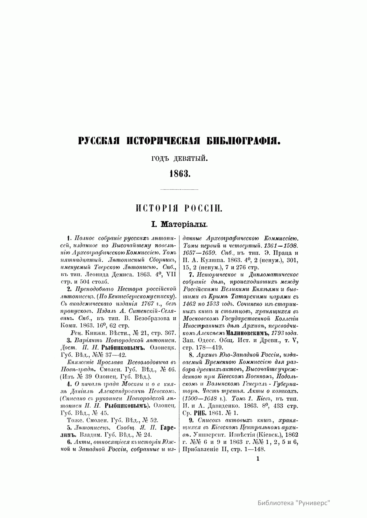Русская историческая библиографiя. Годъ девятый. 1863