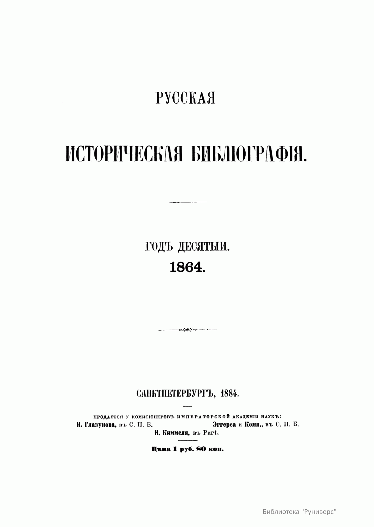 В десяти томах «Русской исторической библиографии» заключается описание свыше 44 000 книг, карт, периодических изданий, статей из журналов и газет по русской и всеобщей истории. Кроме этого, богато представлена литература о Крымской войне 1853–1856 гг., реформе 1860-х гг., польском восстании 1863–1864 гг. и о других событиях.