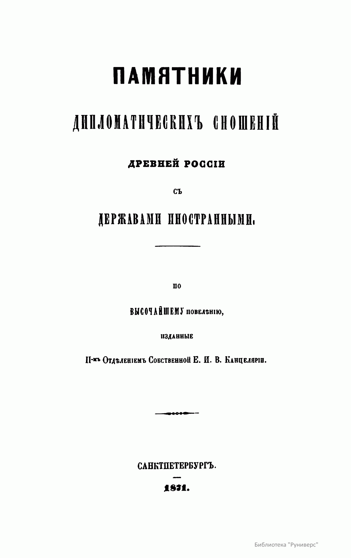 Памятники дипломатическихъ сношенiй древней Россiи съ державами иностранными
