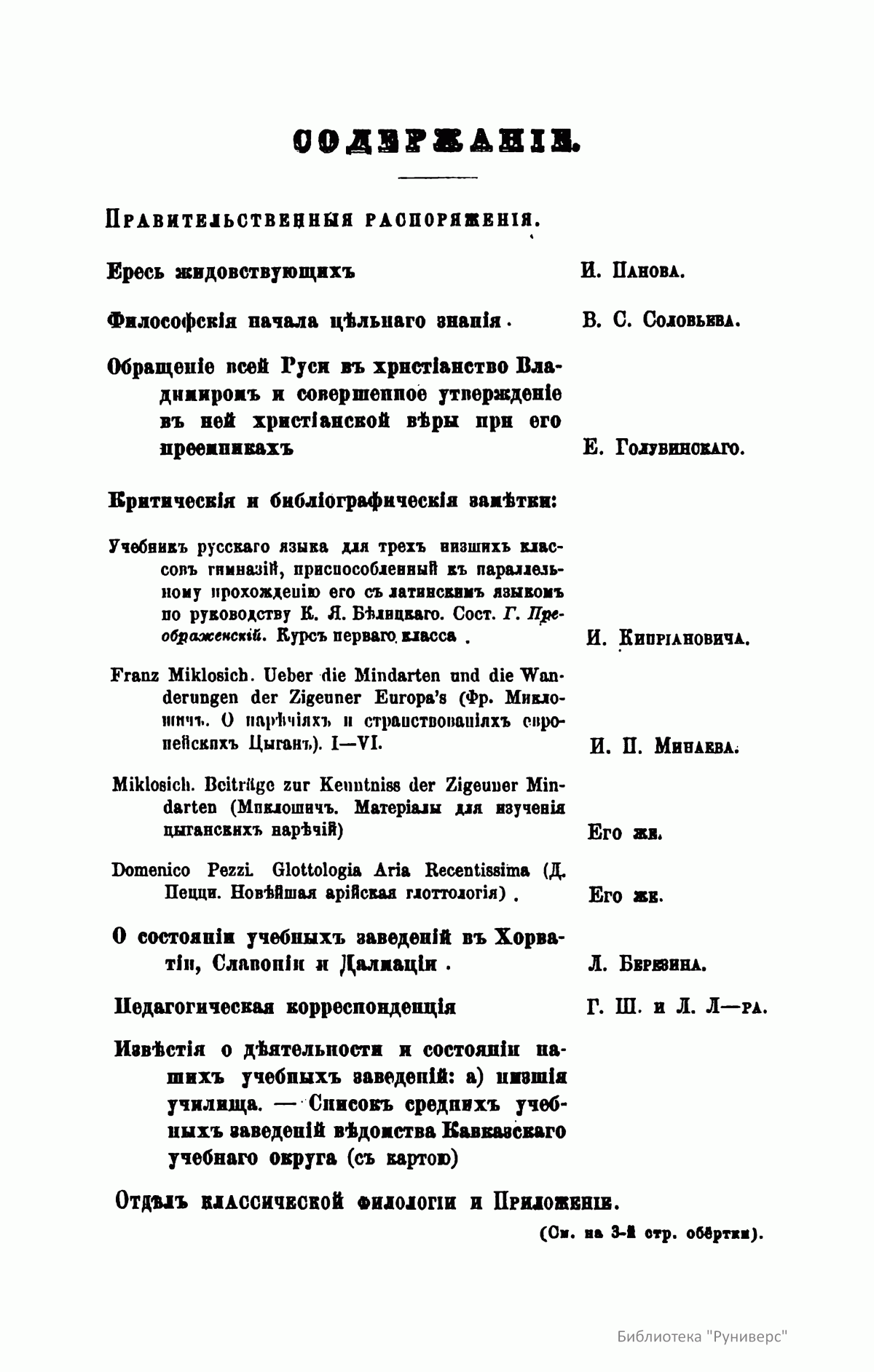 С 1864 года стали выходить указатели к повременным изданиям Министерства народного просвещения начиная с 1803 года.