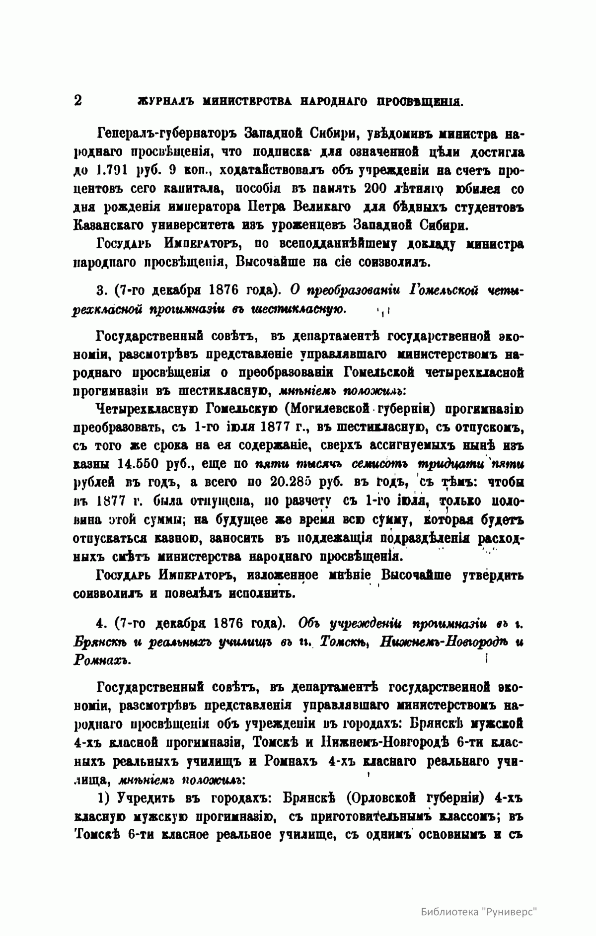 Журнал Министерства народного просвещения выходил с 1834-го по 1917 год. Официальный периодический журнал об успехах просвещения в России. Издатели журнала уверены в том, что «если для каждого человека необходим выход из грубой тьмы невежества и беспрерывное дальнейшее движение к свету, то для народов необходимо попечительное участие правительства в образовании. Только правительство имеет все средства знать и высоту успехов всемирного образования, и настоящие нужды Отечества».