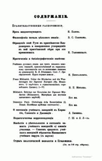 Журнал широкого профиля (гуманитарные науки), но в нем печатались философские статьи, имеется много официального материала, ценного для понимания истории философии в России.