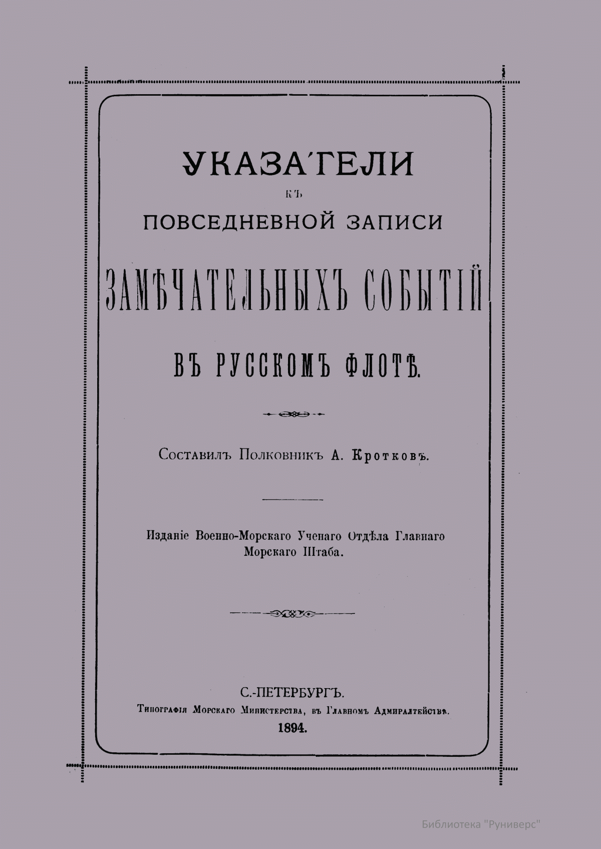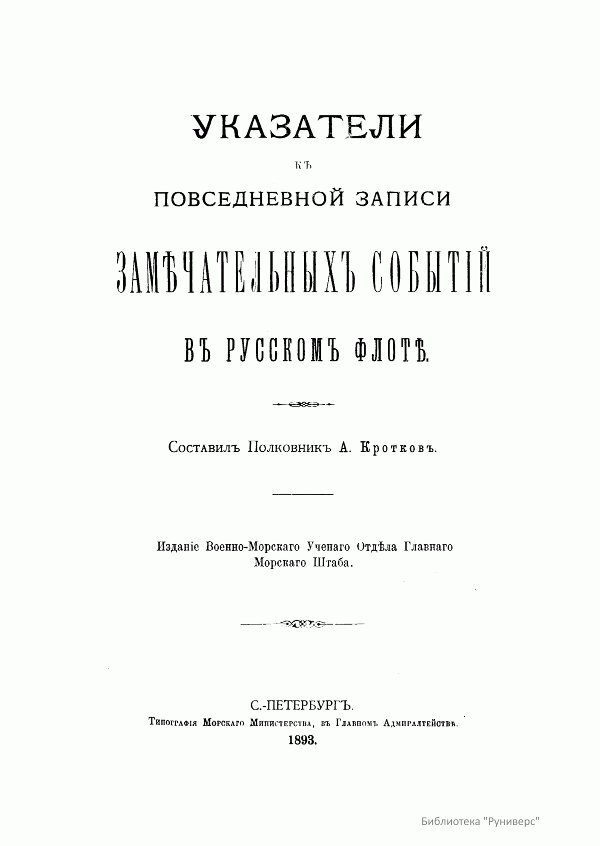 Указатели к повседневной записи замечательных событий в русском флоте