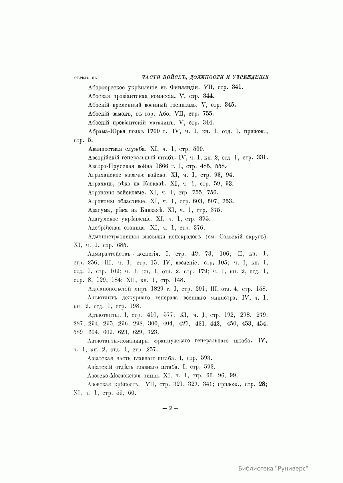 Систематическiй указатель къ историческимъ очеркамъ столѣтiя военнаго министерства. Выпускъ I. Книга 2