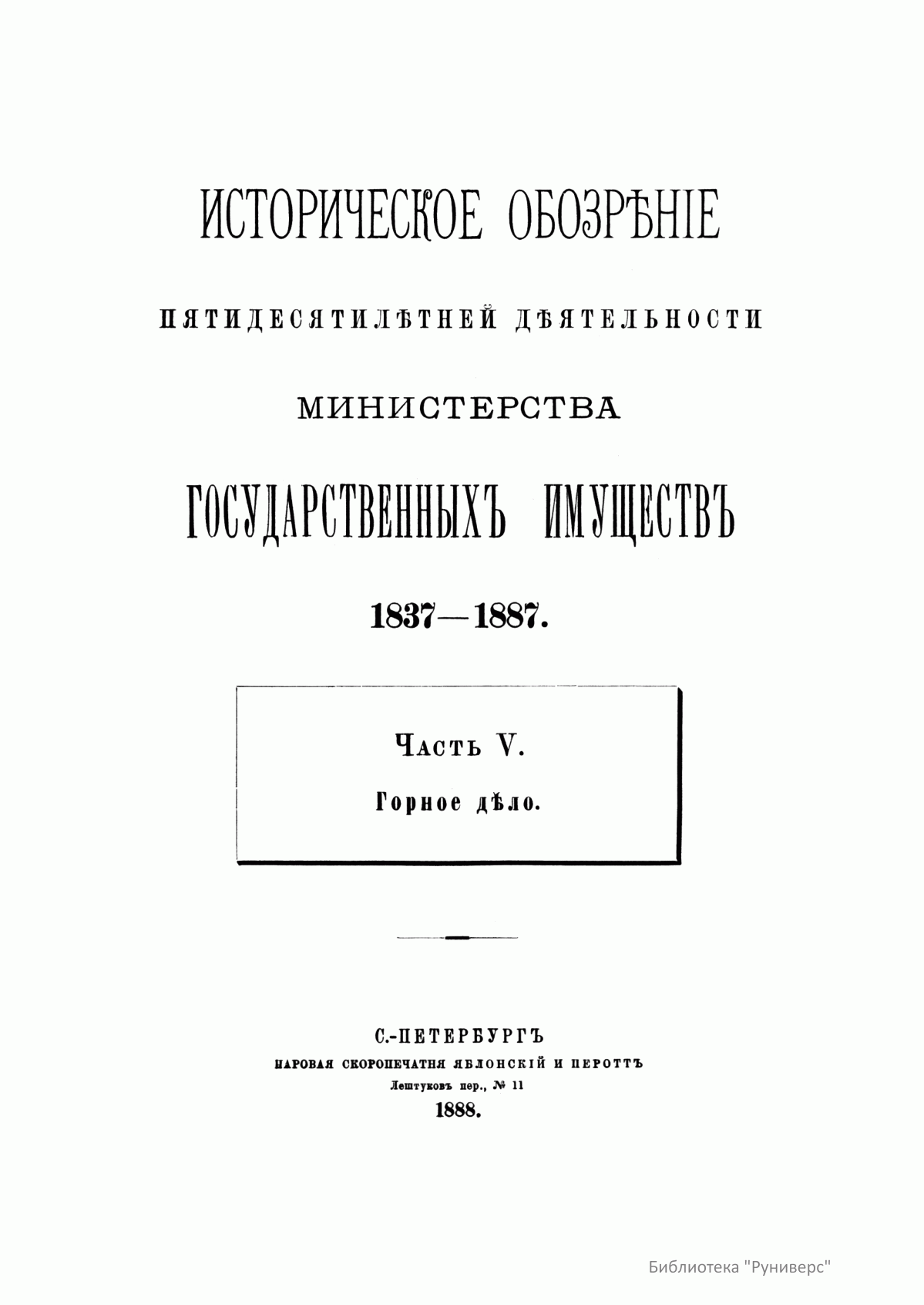 Историческое обозрѣнiе пятидесятилѣтней дѣятельности министерства государственныхъ имуществъ. 1837-1887. Часть V. Горное дело