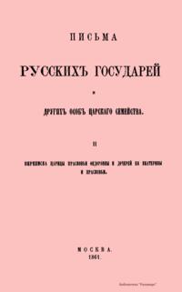 Настоящие письма изданы комиссией печатания государственных грамот и договоров, состоящей при Московском главном архиве министерства иностранных дел. Кроме материалов Главного архива комиссия пользовалась собраниями Государственного архива С.-Петербурга, Императорской публичной библиотеки и Румянцевского музея. Письма русских государей и других особ царского семейства представляют собой любопытный исторический памятник.