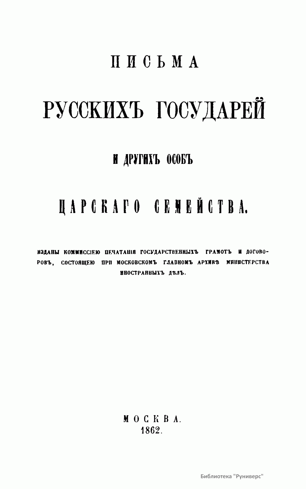 Настоящие письма изданы комиссией печатания государственных грамот и договоров, состоящей при Московском главном архиве министерства иностранных дел. Кроме материалов Главного архива комиссия пользовалась собраниями Государственного архива С.-Петербурга, Императорской публичной библиотеки и Румянцевского музея. Письма русских государей и других особ царского семейства представляют собой любопытный исторический памятник.