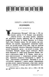 Биографические очерки и эпизоды из жизни русских деятелей XVIII века относятся к периоду от кончины Петра Великого до воцарения Екатерины II – времени памятного знаменательной борьбой потомков старинной московской знати с немцами, все более и более оттеснявшими их от кормила государственного правления. Эта борьба составляет главное содержание большей части монографий, входящих в состав предлагаемого сборника. Вниманию читателя предлагаются следующие статьи: 1. Никита Алферович Кудрявцев и его потомство. 2. Князь Иван Алексеевич Долгорукой, фаворит и обер-камергер императора Петра II, (1708 – 1739). 3. Княгиня Наталья Борисовна Долгорукая, (1714 – 1771). 4. Князь Сергей Григорьевич Долгорукой и его семья в ссылке (их жизнь в Раненбурге с 1730-го по 1735 г.). 5. Ссылка князя Василия Лукича Долгорукаго в село Знаменское, (1730). 6. Суд над князем Дмитрием Михайловичем Голицыным, (1736 – 1737). 7. Артемий Петрович Волынской и его «конфиденты», (1689 – 1740). 8. Василий Никитич Татищев, (1686 – 1750). 9. Некоторые из сторонников воцарения Екатерины II, (1757 – 1762). 10. Три рецензии: 1. М. И. Семевский. Царица Прасковья. Спб., 1883. 2. М. И. Семевский. Царица Екатерина Алексеевна, Анна и Вилим Монс. Спб., 1884. 3. Д. Ф. Кобеко. Цесаревич Павел Петрович. Спб., 1883.