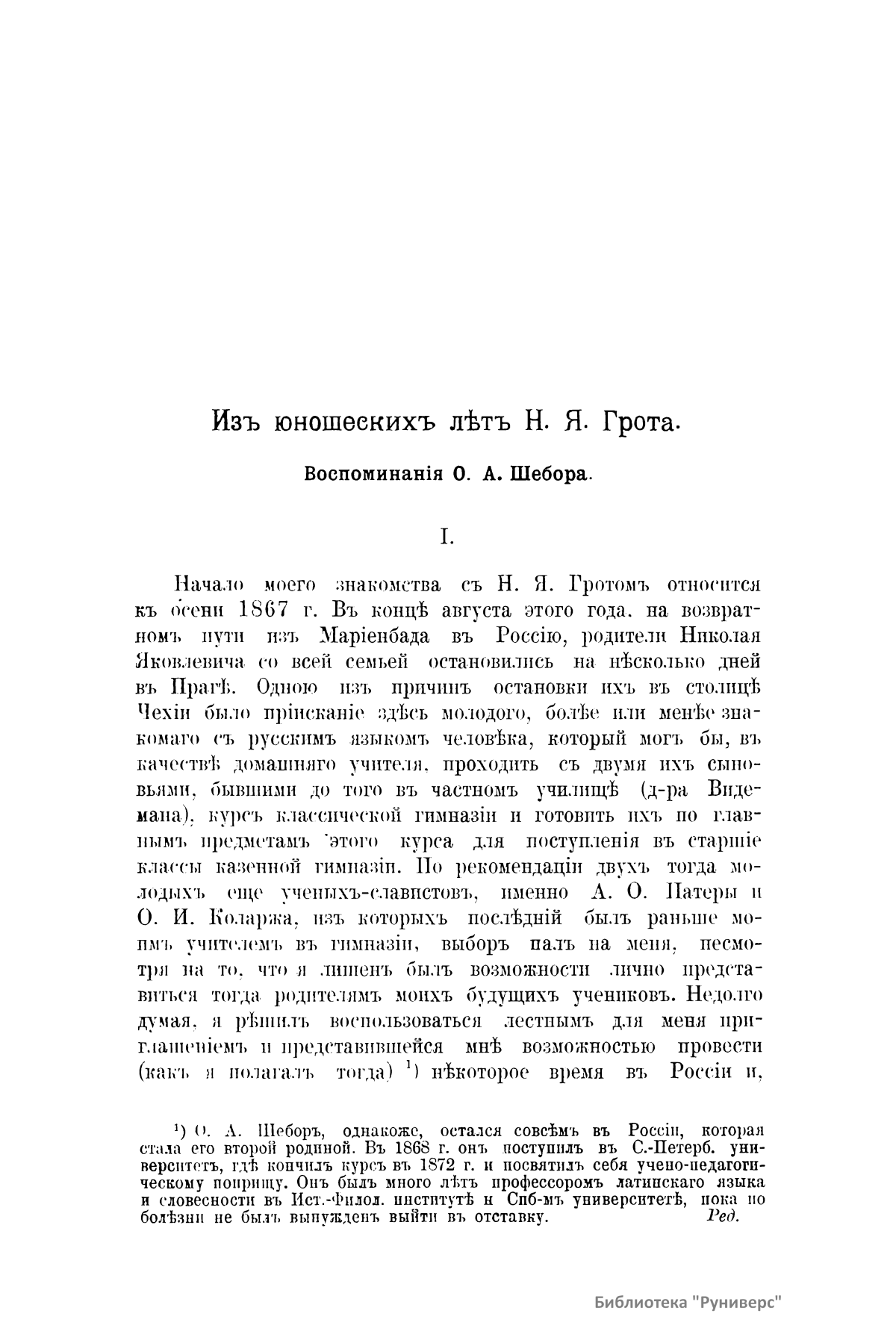 Николай Яковлевичъ Гротъ въ очеркахъ, воспоминанiяхъ и письмахъ товарищей и учениковъ, друзей и почитателей