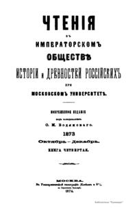 Чтенiя въ Императорскомъ Обществѣ Исторiи и Древностей Россiйскихъ при Московскомъ Университетѣ. 1873. Октябрь-Декабрь. Книга четвертая