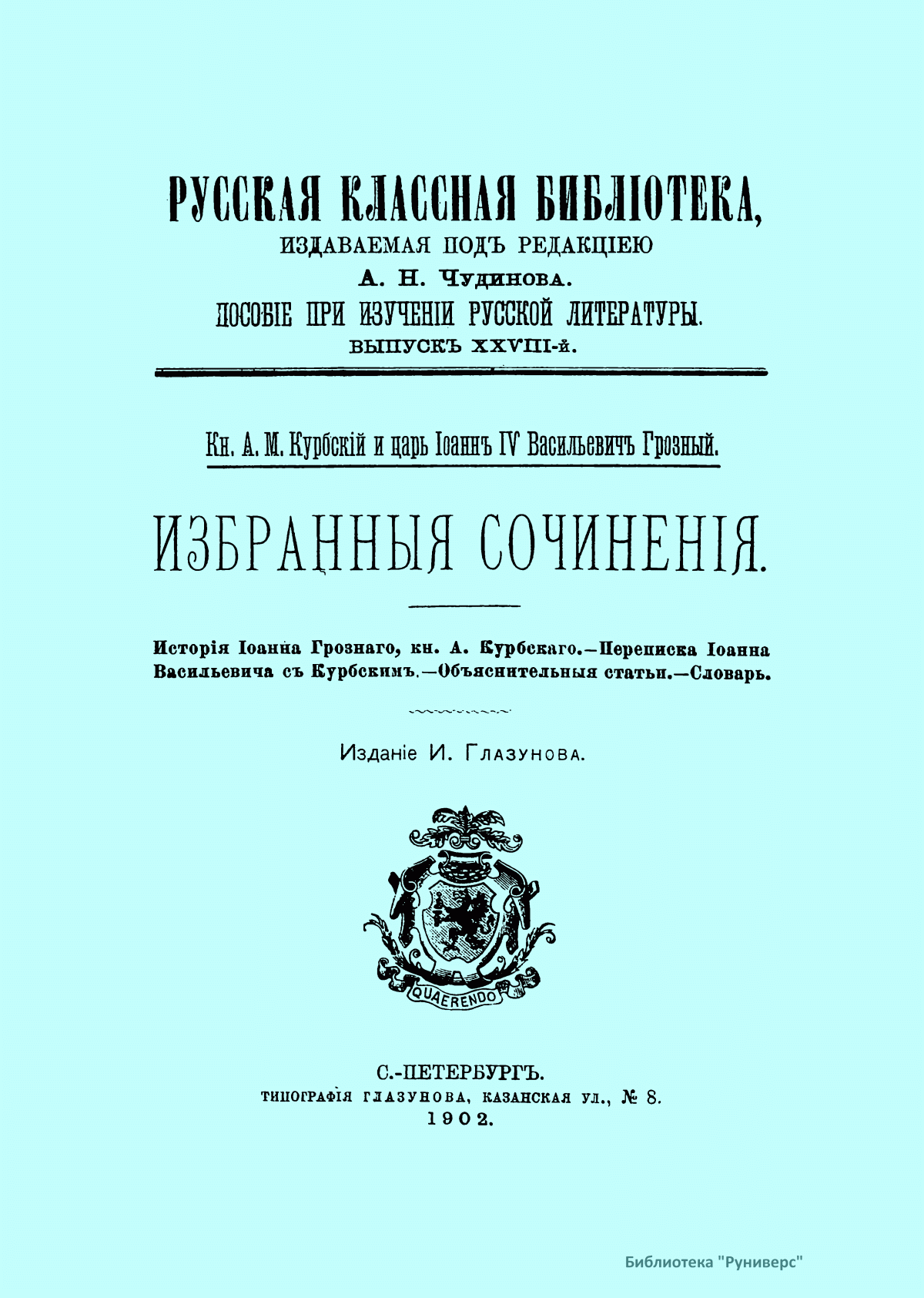 Кн. А.М. Курбскiй и царь Iоанн IV Васильевичъ Грозный. Избранныя сочиненiя
