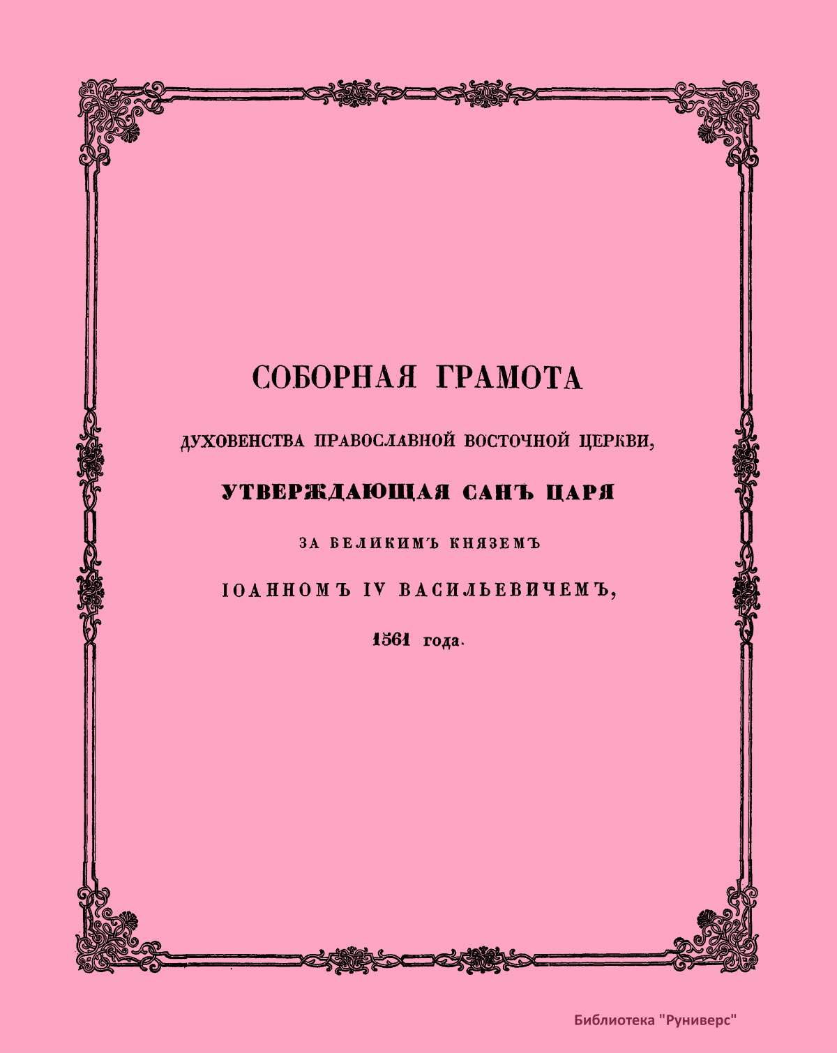 Соборная грамота духовенства православной восточной церкви, утверждающая санъ царя за Великимъ Княземъ Iоанномъ IV Васильевичемъ, 1561 года