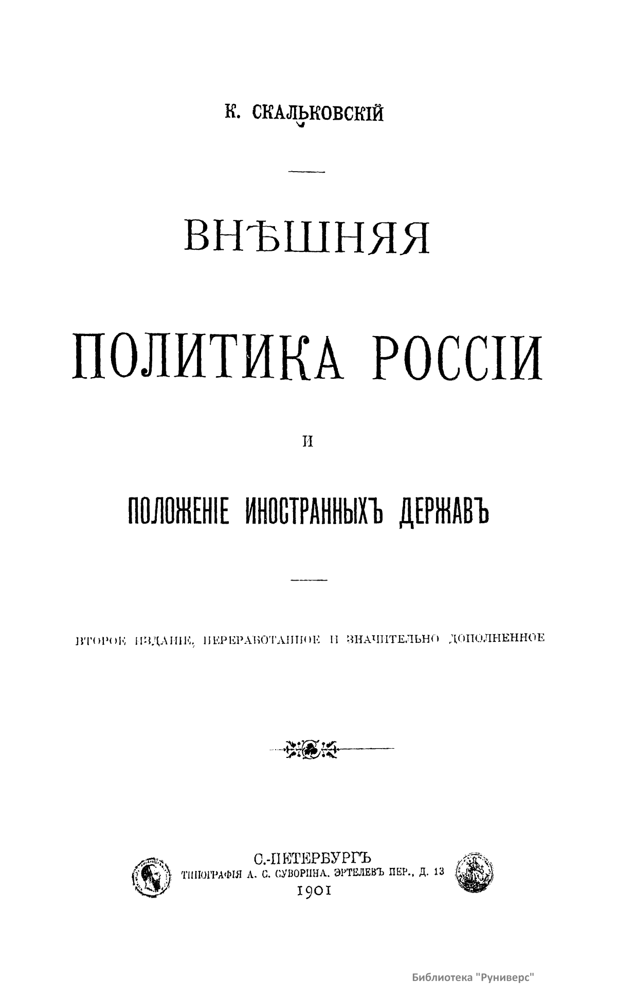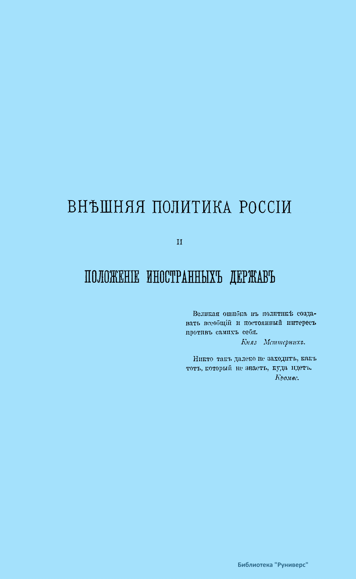 Внѣшняя политика Россiи и положенiе иностранныхъ державъ