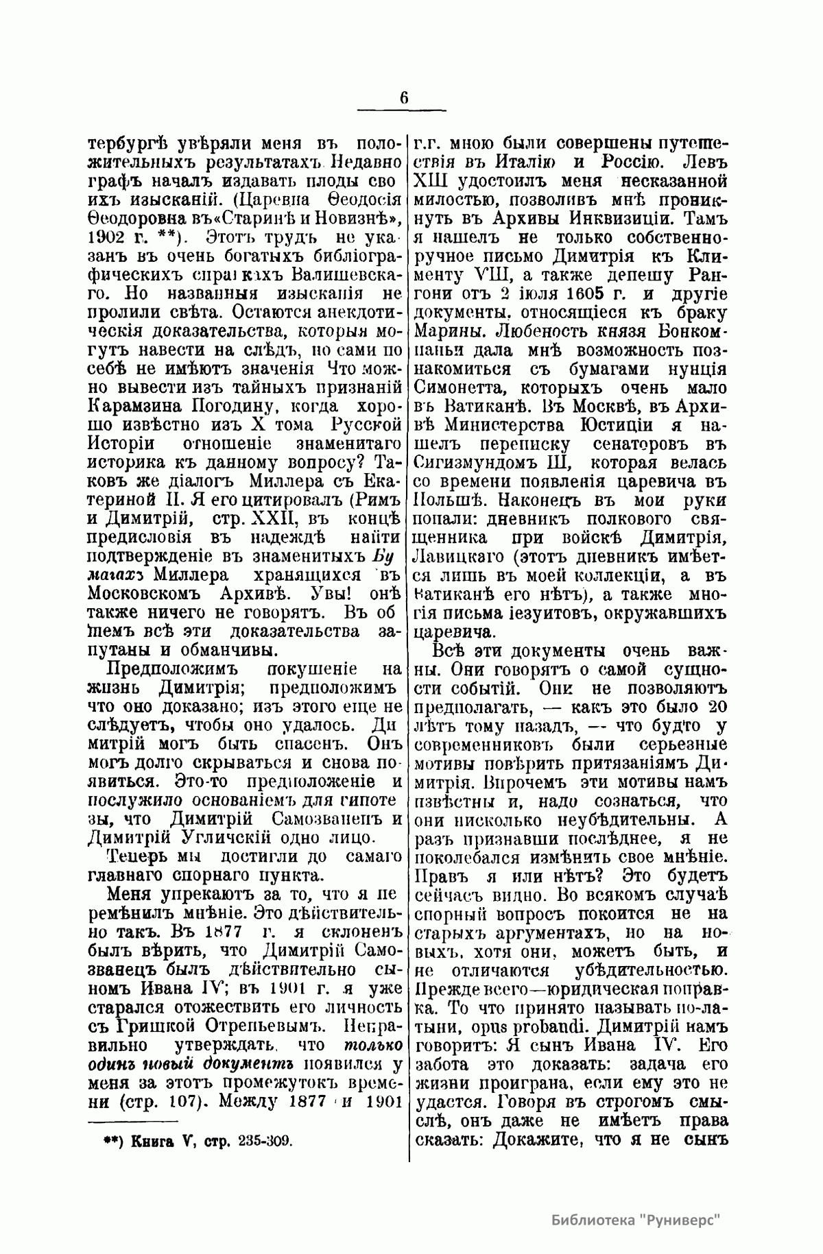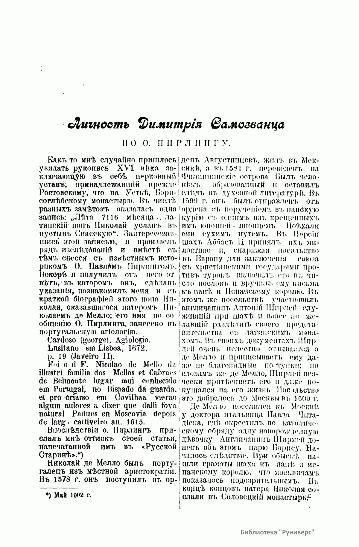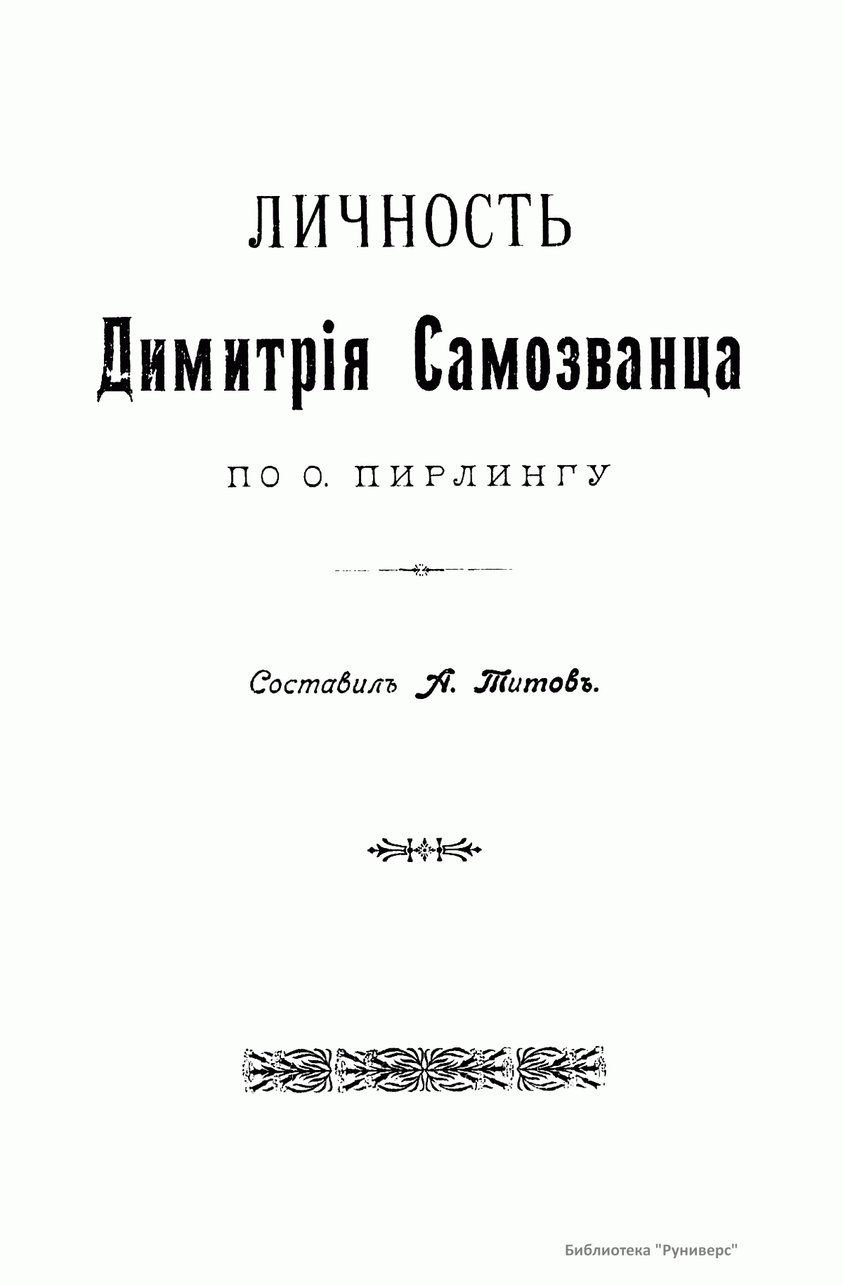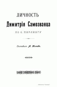 В брошюре излагается взгляд историка-иезуита Павла Пирлинга на проблему личности Лжедмитрия I: был ли Дмитрий действительно сыном Ивана Грозного или это был ловкий самозванец? Его выводы – плод кропотливых изысканий в западных архивах, преимущественно в Ватикане.
