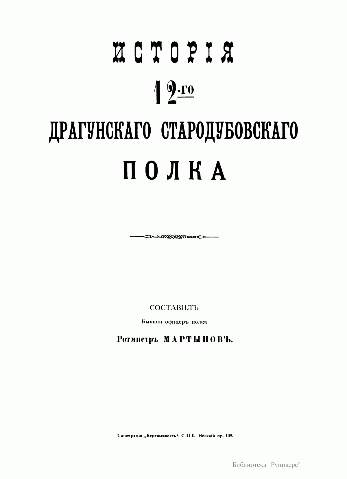 Исторiя 12-го драгунскаго стародубовскаго полка