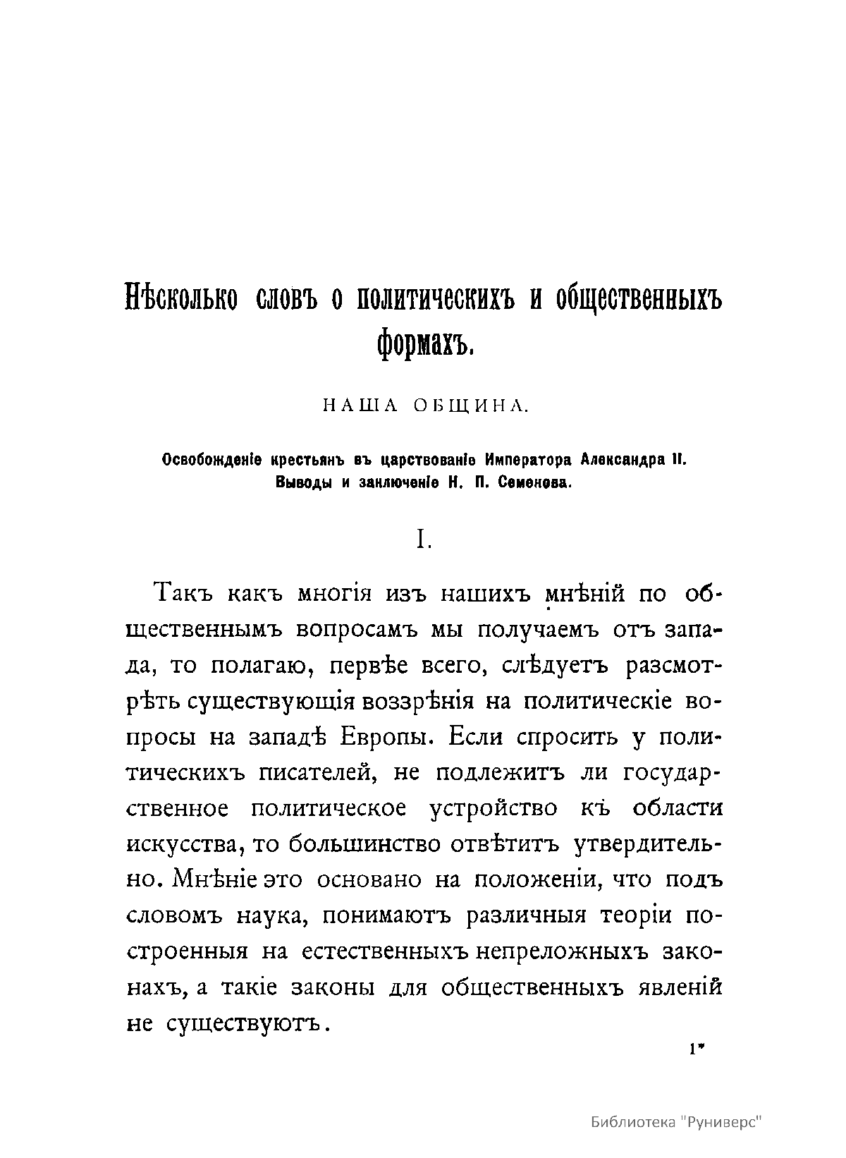 Нѣсколько словъ о политическихъ и общественныхъ формахъ. Наша община