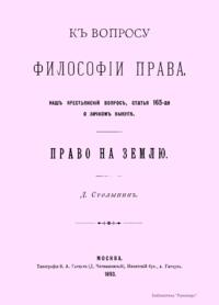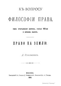 К вопросу философии права. Наш крестьянский вопрос, статья 165-ая о личном выкупе. Право на землю