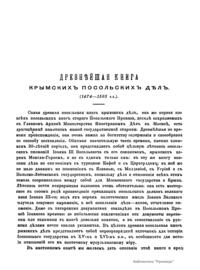 Древнѣйшая книга крымскихъ посольскихъ дѣлъ 1474-1505 г.г.