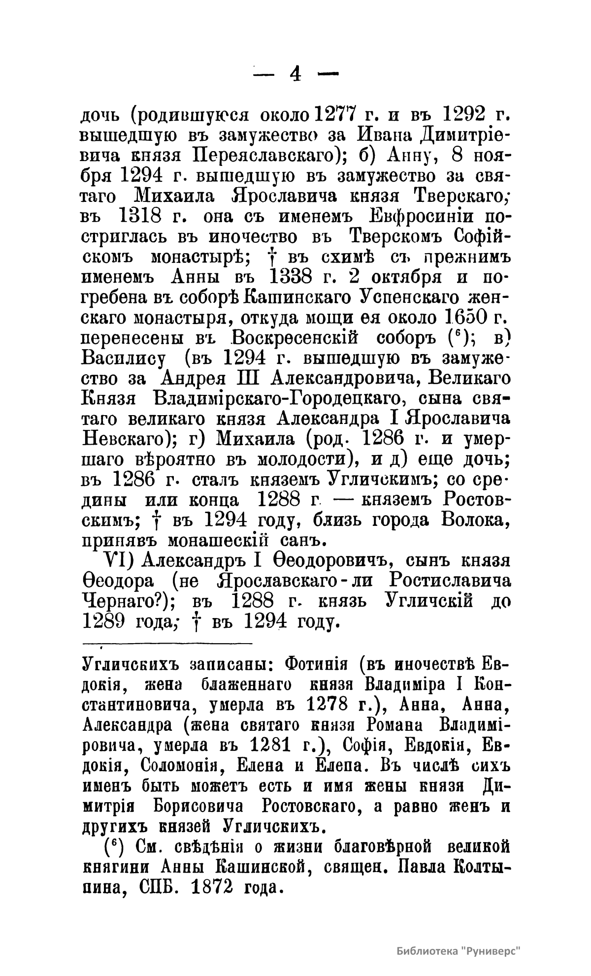Брошюра содержит сведения об углических владетельных князьях из рода Великих князей владимирских; об углических владетельных князьях из рода Великих князей московских.