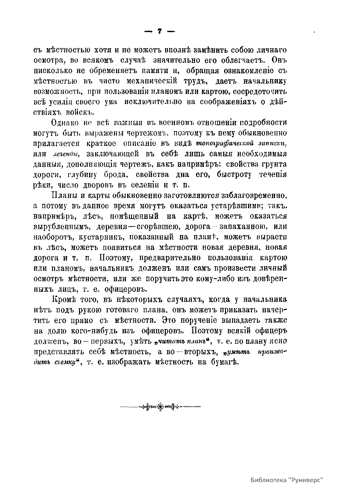 «Записки» составлены преподавателем Чугуевского пехотного юнкерского училища по программе для юнкерских училищ, объявленной в приказе по военному ведомству 1893 года. Издание вызвано желанием дать учащимся руководство, в котором они могли бы найти ответы на все вопросы программы в простой и наглядной форме изложения. Все основные теоретические положения и приемы съемки подкреплены каждый раз подходящими примерами и изложены с возможной полнотой, но минуя тригонометрические выводы, не соответствующие объему курса математики в юнкерских училищах. Все, не имеющее прямого отношения к чтению планов и карт или к общепринятым углоначертательным способам съемки, а также многие примеры напечатаны мелким шрифтом, все же, имеющее особо важное значение, – курсивом. Топография – географическое и геометрическое изучение местности путем проведения съемочных работ и создания на их основе топографических карт.