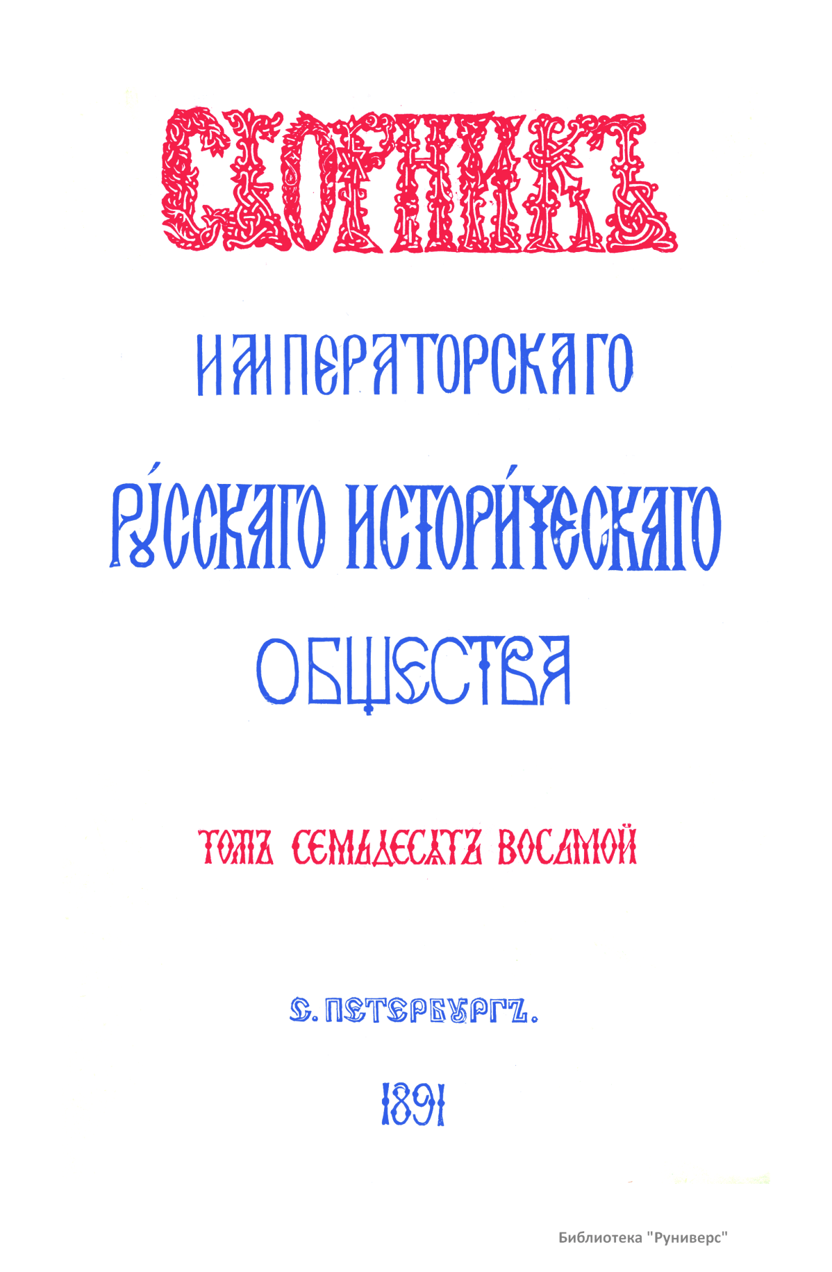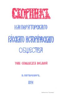 Сборник Русского исторического общества. Том семьдесят восьмой