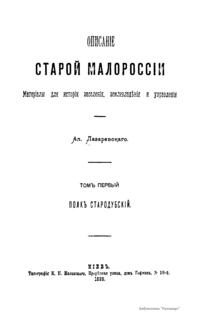 Описанiе старой Малороссiи. Матерiалы для исторiи заселенiя, землевладѣнiя и управленiя