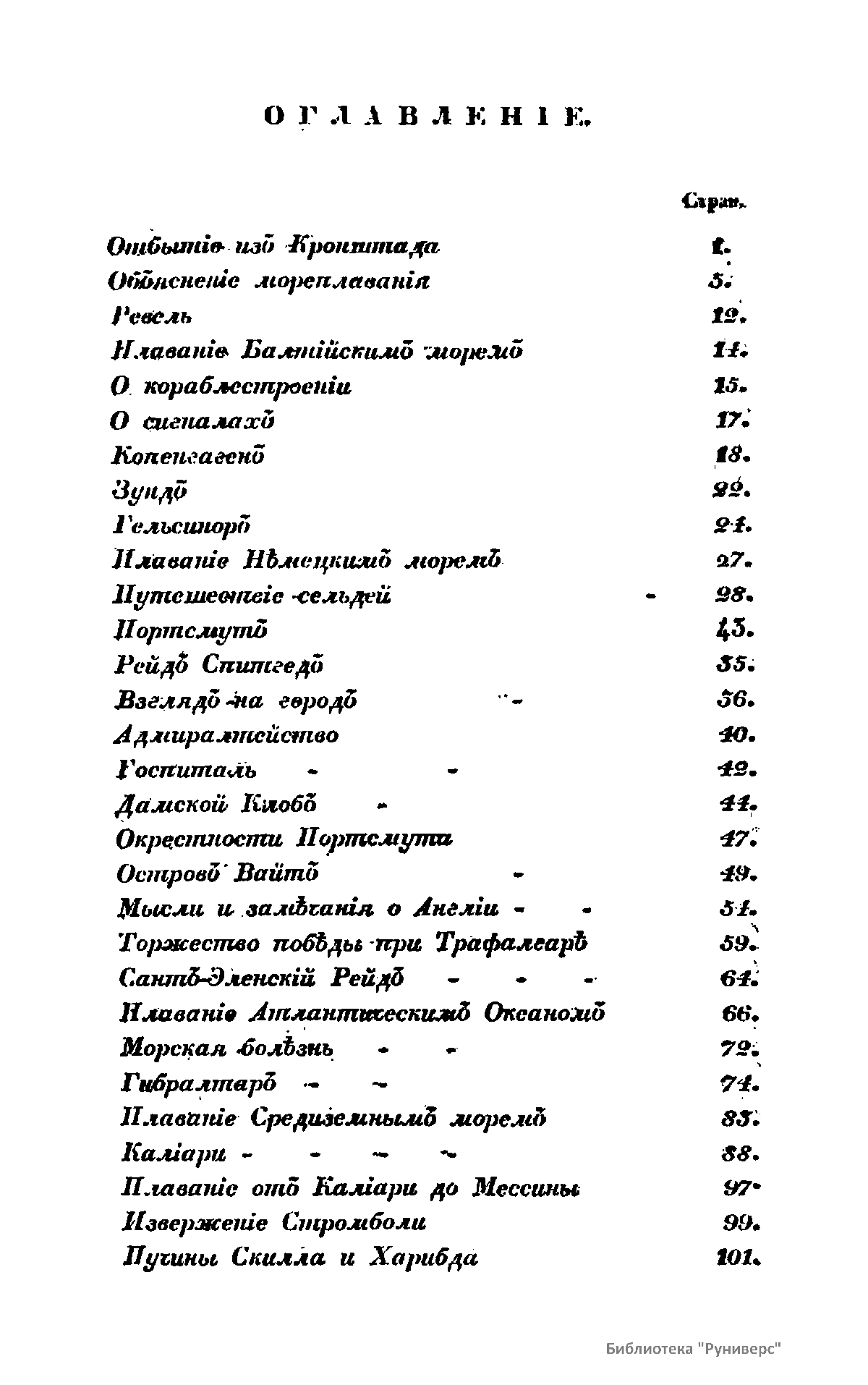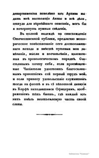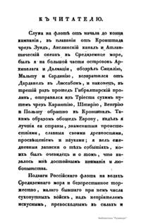 Записки морскаго офицера, въ продолженiи кампанiи на Средиземномъ морѣ подъ начальствомъ Вице-Адмирала Дмитрiя Николаевича Сенявина отъ 1805 по 1810 годъ. Часть первая