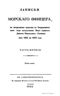Записки морского офицера, в продолжении кампании на Средиземном море под начальством Вице-Адмирала Дмитрия Николаевича Сенявина от 1805 по 1810 год