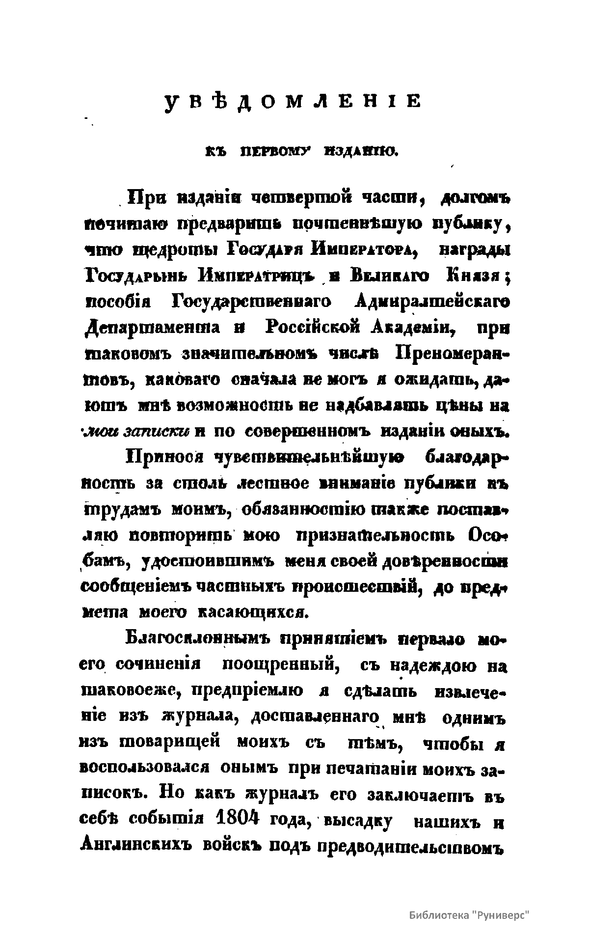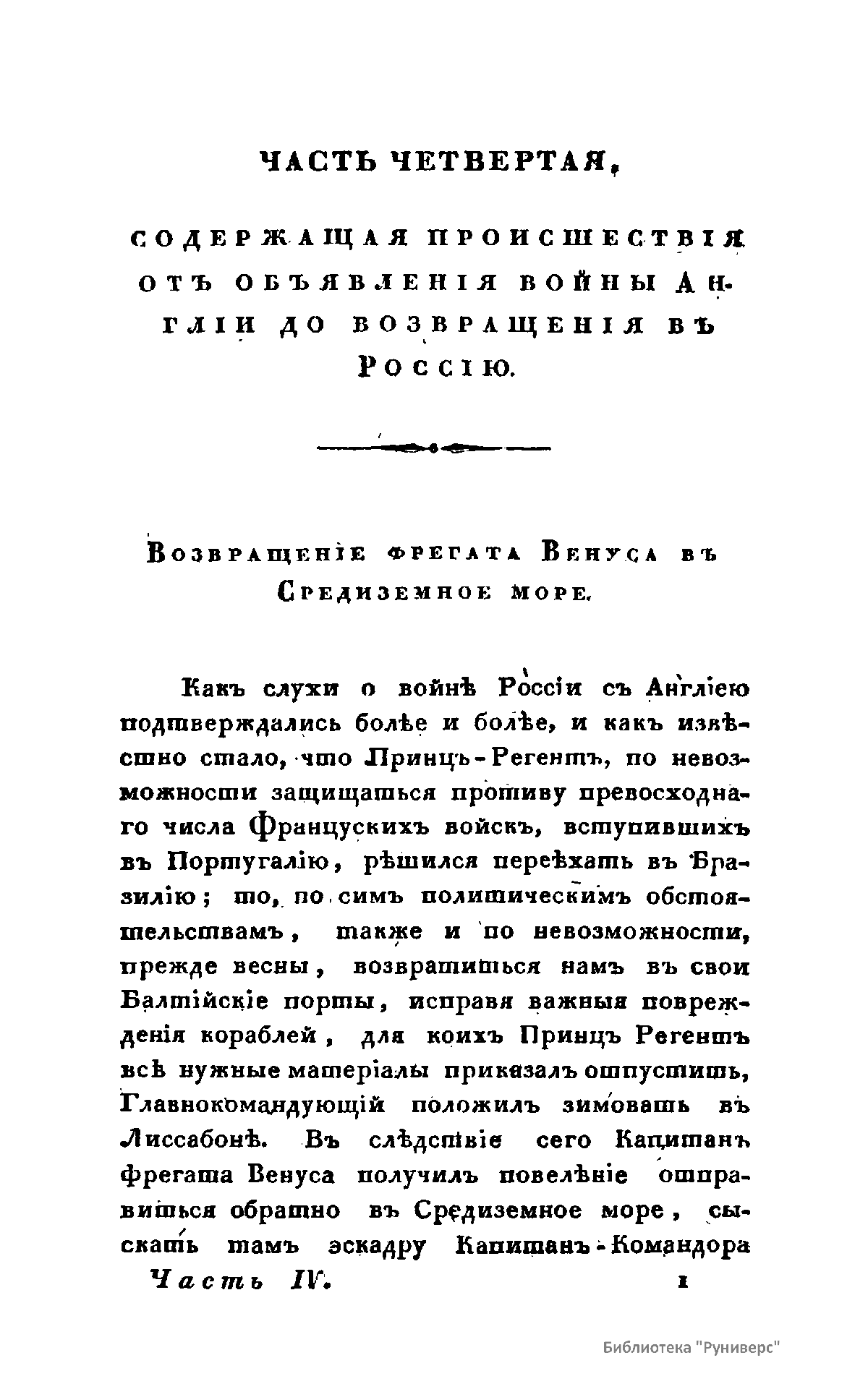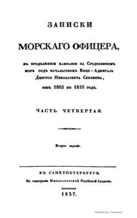 Записки морскаго офицера, въ продолженiи кампанiи на Средиземномъ морѣ подъ начальствомъ Вице-Адмирала Дмитрiя Николаевича Сенявина отъ 1805 по 1810 годъ. Часть четвертая