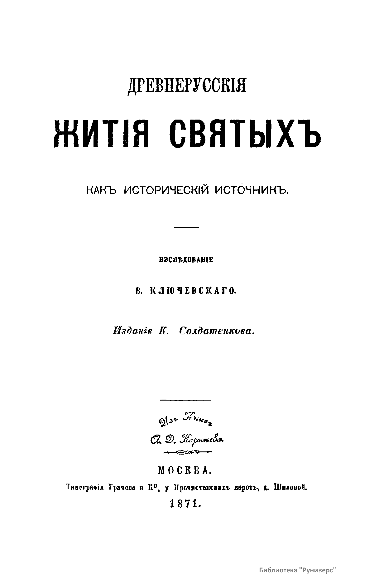 Древнерусскiя житiя святыхъ какъ историческiй источникъ