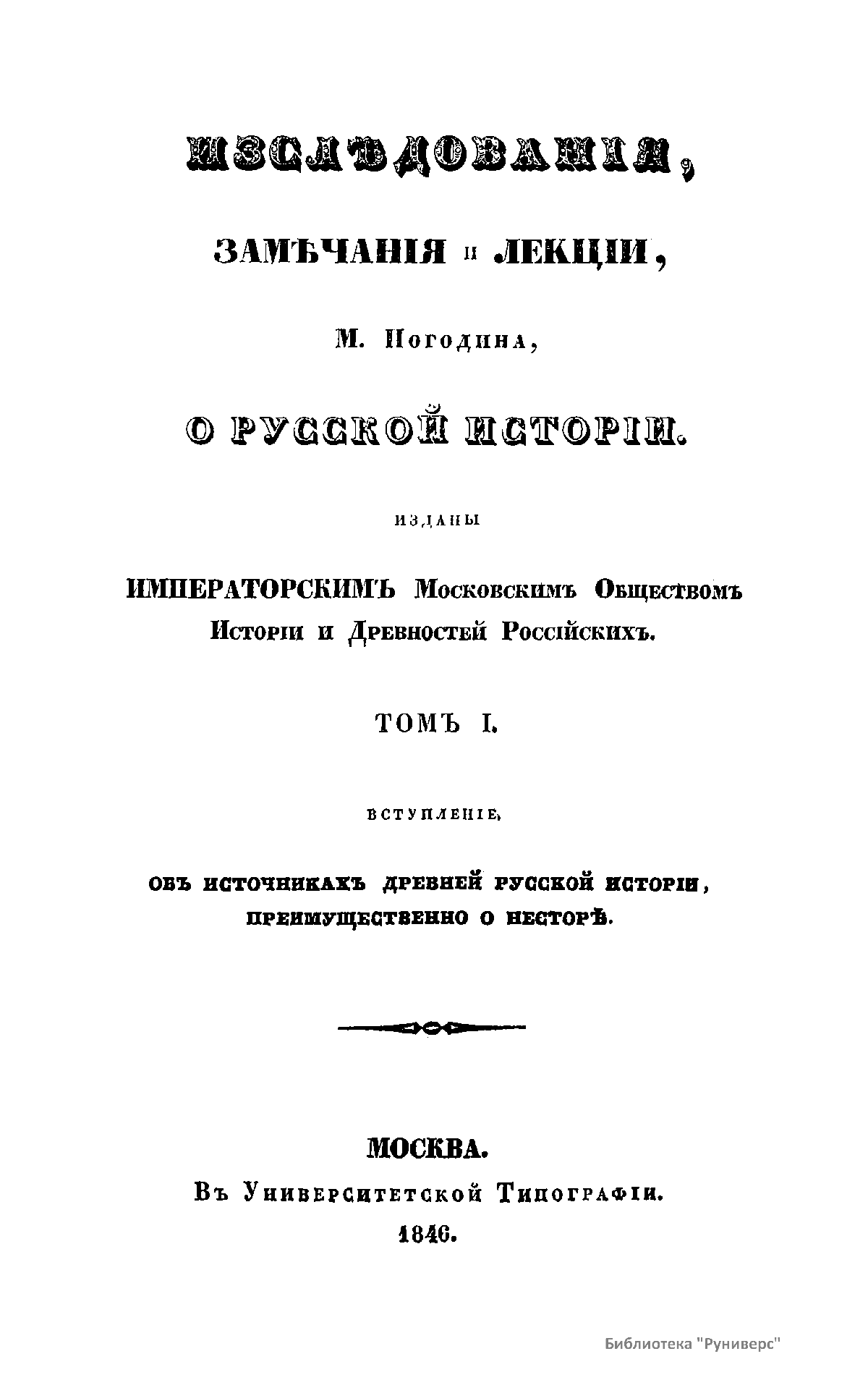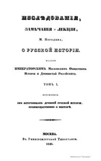 Изслѣдованiя, замѣчанiя и лекцiи о русской исторiи