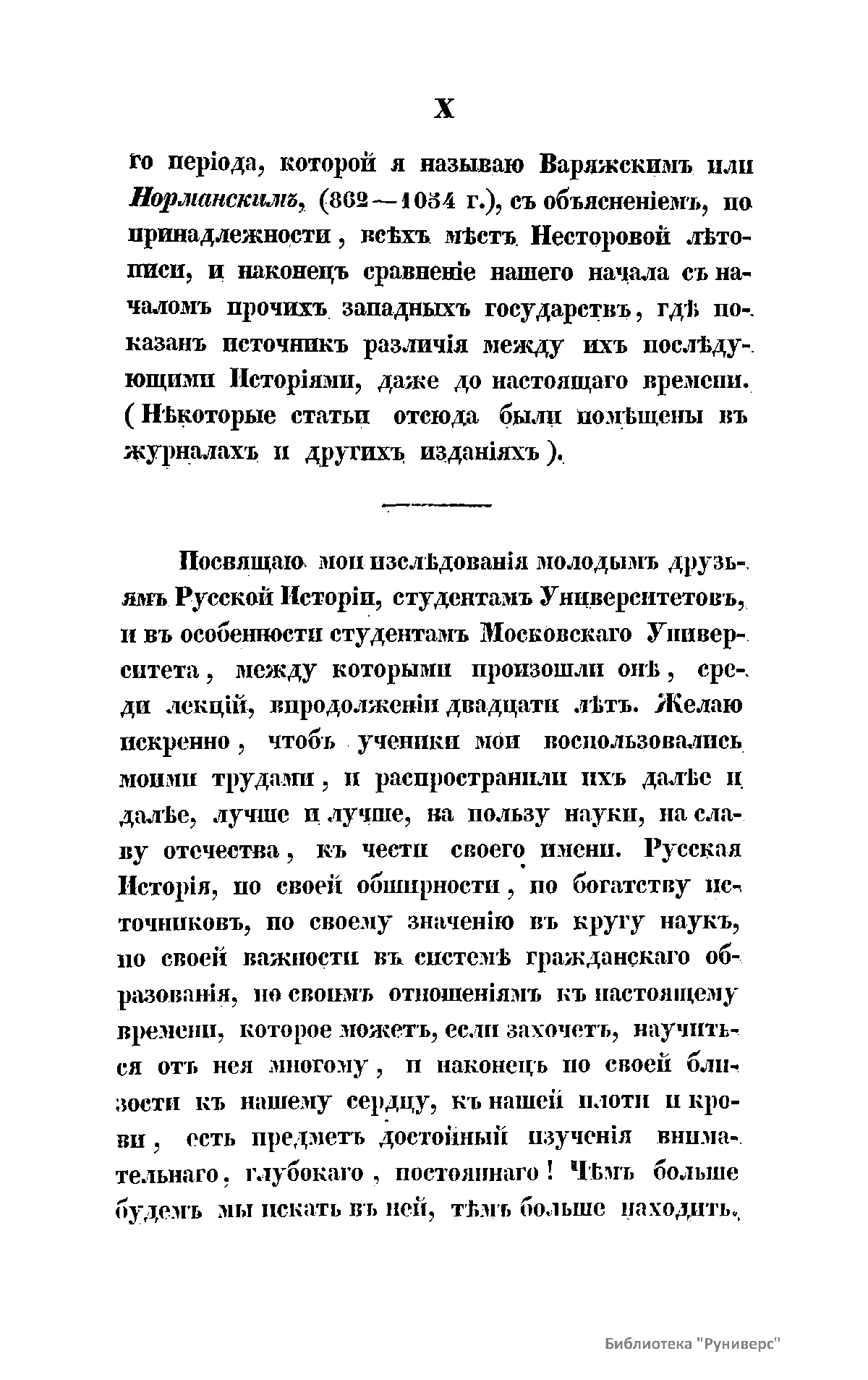 «На пользу науке, на славу Отечества, к чести своего времени» Первый том посвящен источникам древнейшей русской истории и преимущественно Несторовой летописи. В его состав вошло уже напечатанное прежде исследование, к которому присоединены замечания о прочих источниках: Русской правде, церковных уставах, северных сагах и пр. Приведен разбор всех мнений о Несторовой летописи. Предмет второго тома – происхождение Варягов-Руси. Здесь помещено первое рассуждение автора об этом предмете, исправленное и дополненное новыми исследованиями и открытиями. Автор разбирает также новые мнения о происхождении Варягов-Руси. В этом томе опубликованы лекции о славянах, в которых заключается краткое извлечение о Славянских Древностях Шафарика. Третий том содержит исследования и замечания о событиях первого периода, который автор называет Варяжским, или Норманским (862 – 1054), с объяснением всех мест Несторовой летописи, и сравнение русского начала с началом прочих западных государств, где показан источник различия между их последующими историями. Четвертый том посвящен приготовительным и общим исследованиям: об источниках для удельного периода, т.е. о летописях и их хронологии, о родах князей, о пределах и городах Ярославовых княжеств, о праве великокняжеского наследства, об отношении великого князя к прочим князьям, об отношении их между собой. В пятом томе исследуются междуусобные войны князей и их сношения, внешние войны и внешние сношения. В шестом томе автор приводит азбучный список русских князей до монгольского ига; список русских князей до монгольского ига по степеням и старшинству; список князей по княжествам и уделам. В седьмом томе автор рассуждает о князе, его дружине, боярах и отроках; о городах и их обитателях; о волостях и их отношении к городам; о военном деле; о праве; торговле; церкви, грамотности и образовании.