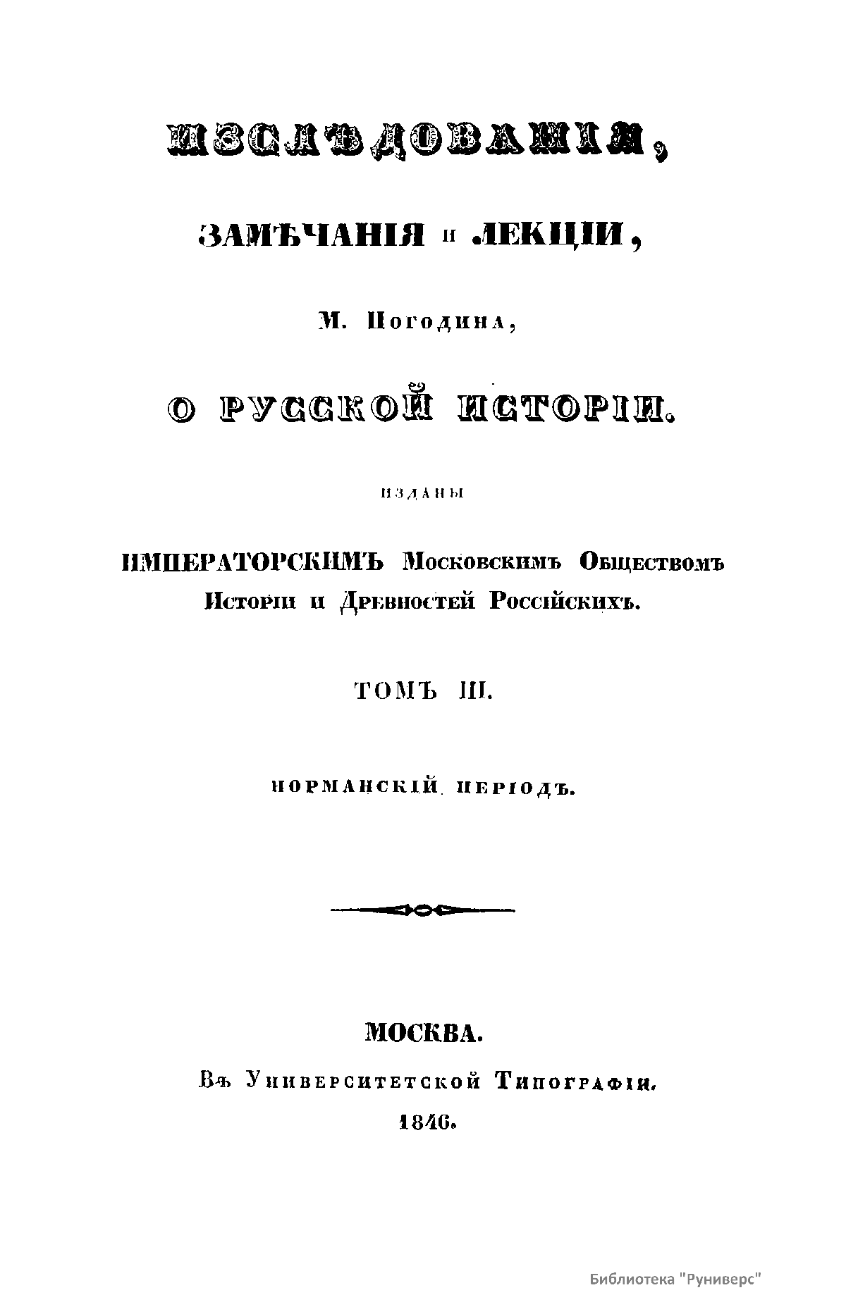 Изслѣдованiя, замѣчанiя и лекцiи о русской исторiи. Томъ III. Норманскiй перiодъ