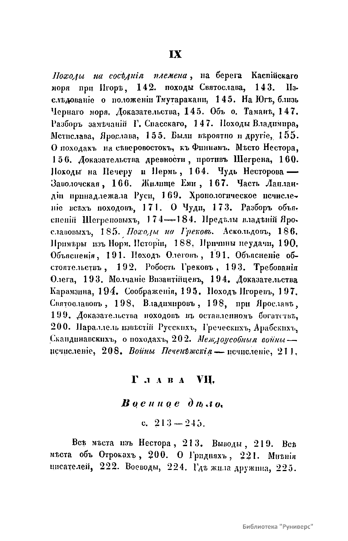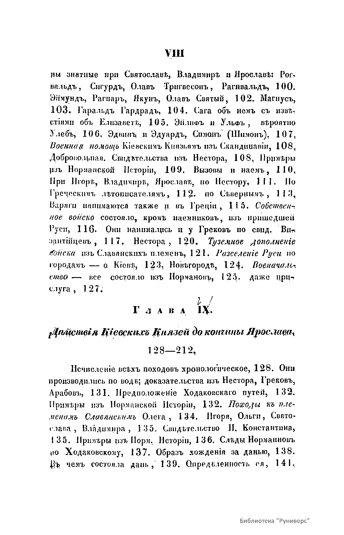 «На пользу науке, на славу Отечества, к чести своего времени» Первый том посвящен источникам древнейшей русской истории и преимущественно Несторовой летописи. В его состав вошло уже напечатанное прежде исследование, к которому присоединены замечания о прочих источниках: Русской правде, церковных уставах, северных сагах и пр. Приведен разбор всех мнений о Несторовой летописи. Предмет второго тома – происхождение Варягов-Руси. Здесь помещено первое рассуждение автора об этом предмете, исправленное и дополненное новыми исследованиями и открытиями. Автор разбирает также новые мнения о происхождении Варягов-Руси. В этом томе опубликованы лекции о славянах, в которых заключается краткое извлечение о Славянских Древностях Шафарика. Третий том содержит исследования и замечания о событиях первого периода, который автор называет Варяжским, или Норманским (862 – 1054), с объяснением всех мест Несторовой летописи, и сравнение русского начала с началом прочих западных государств, где показан источник различия между их последующими историями. Четвертый том посвящен приготовительным и общим исследованиям: об источниках для удельного периода, т.е. о летописях и их хронологии, о родах князей, о пределах и городах Ярославовых княжеств, о праве великокняжеского наследства, об отношении великого князя к прочим князьям, об отношении их между собой. В пятом томе исследуются междуусобные войны князей и их сношения, внешние войны и внешние сношения. В шестом томе автор приводит азбучный список русских князей до монгольского ига; список русских князей до монгольского ига по степеням и старшинству; список князей по княжествам и уделам. В седьмом томе автор рассуждает о князе, его дружине, боярах и отроках; о городах и их обитателях; о волостях и их отношении к городам; о военном деле; о праве; торговле; церкви, грамотности и образовании.