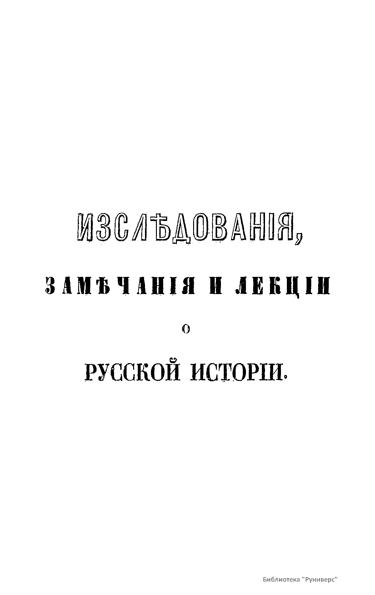 «На пользу науке, на славу Отечества, к чести своего времени» Первый том посвящен источникам древнейшей русской истории и преимущественно Несторовой летописи. В его состав вошло уже напечатанное прежде исследование, к которому присоединены замечания о прочих источниках: Русской правде, церковных уставах, северных сагах и пр. Приведен разбор всех мнений о Несторовой летописи. Предмет второго тома – происхождение Варягов-Руси. Здесь помещено первое рассуждение автора об этом предмете, исправленное и дополненное новыми исследованиями и открытиями. Автор разбирает также новые мнения о происхождении Варягов-Руси. В этом томе опубликованы лекции о славянах, в которых заключается краткое извлечение о Славянских Древностях Шафарика. Третий том содержит исследования и замечания о событиях первого периода, который автор называет Варяжским, или Норманским (862 – 1054), с объяснением всех мест Несторовой летописи, и сравнение русского начала с началом прочих западных государств, где показан источник различия между их последующими историями. Четвертый том посвящен приготовительным и общим исследованиям: об источниках для удельного периода, т.е. о летописях и их хронологии, о родах князей, о пределах и городах Ярославовых княжеств, о праве великокняжеского наследства, об отношении великого князя к прочим князьям, об отношении их между собой. В пятом томе исследуются междуусобные войны князей и их сношения, внешние войны и внешние сношения. В шестом томе автор приводит азбучный список русских князей до монгольского ига; список русских князей до монгольского ига по степеням и старшинству; список князей по княжествам и уделам. В седьмом томе автор рассуждает о князе, его дружине, боярах и отроках; о городах и их обитателях; о волостях и их отношении к городам; о военном деле; о праве; торговле; церкви, грамотности и образовании.