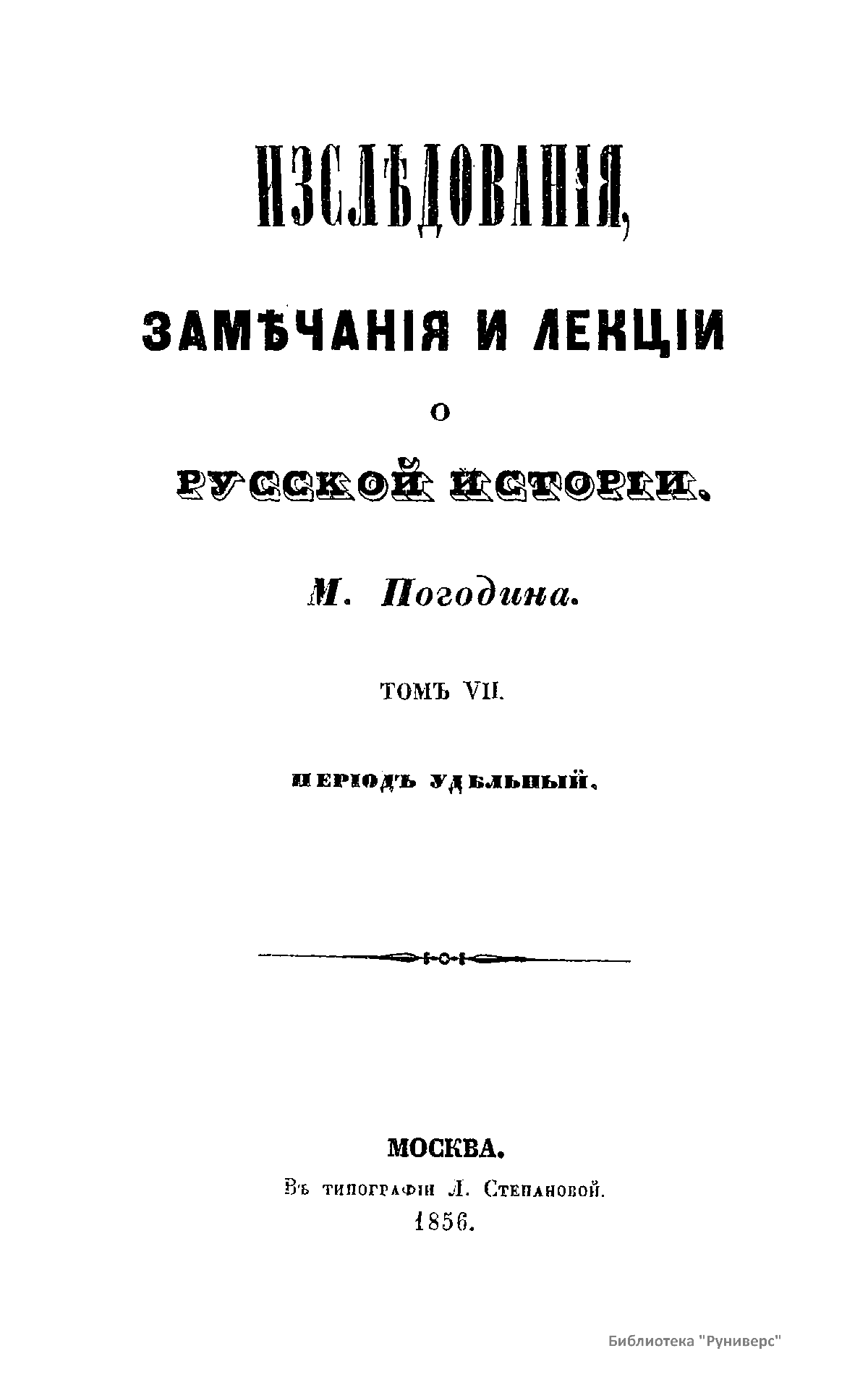Изслѣдованiя, замѣчанiя и лекцiи о русской исторiи. Томъ VII. Перiод удѣльный