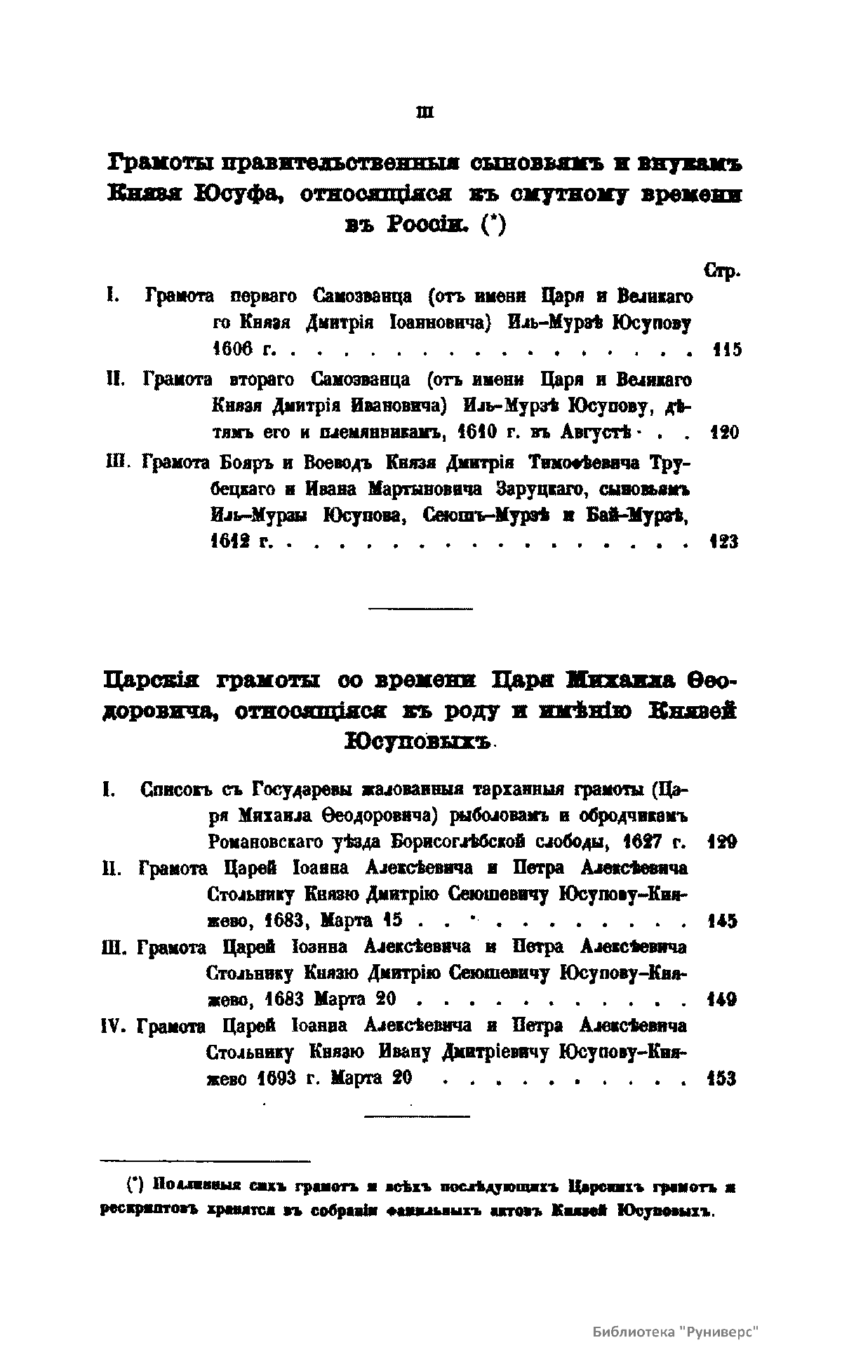 О родѣ князей Юсуповыхъ, собранiе жизнеописанiй ихъ, грамотъ и писемъ къ нимъ россiйскихъ государей, съ XVI до половины XIX вѣка и другихъ фамильныхъ бумагъ, съ присовокупленiемъ поколѣнной росписи предковъ князей Юсуповыхъ съ XIV-го вѣка. Часть вторая