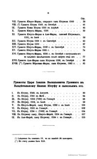 Первую часть составляют отдельные жизнеописания представителей рода князей Юсуповых. Во второй части опубликованы исторические акты с XIV до половины XIX века