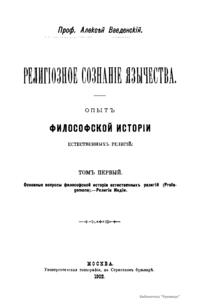 в цикле «Из чтений по философии религии». Универсальная идея религиозного развития, предложенная Кудрявцевым-Платоновым, у Введенского предстала в концепции «естественного» религиозного сознания, устремленного к поиску положительной религиозной истины, но постепенно приходящего к полной деградации.