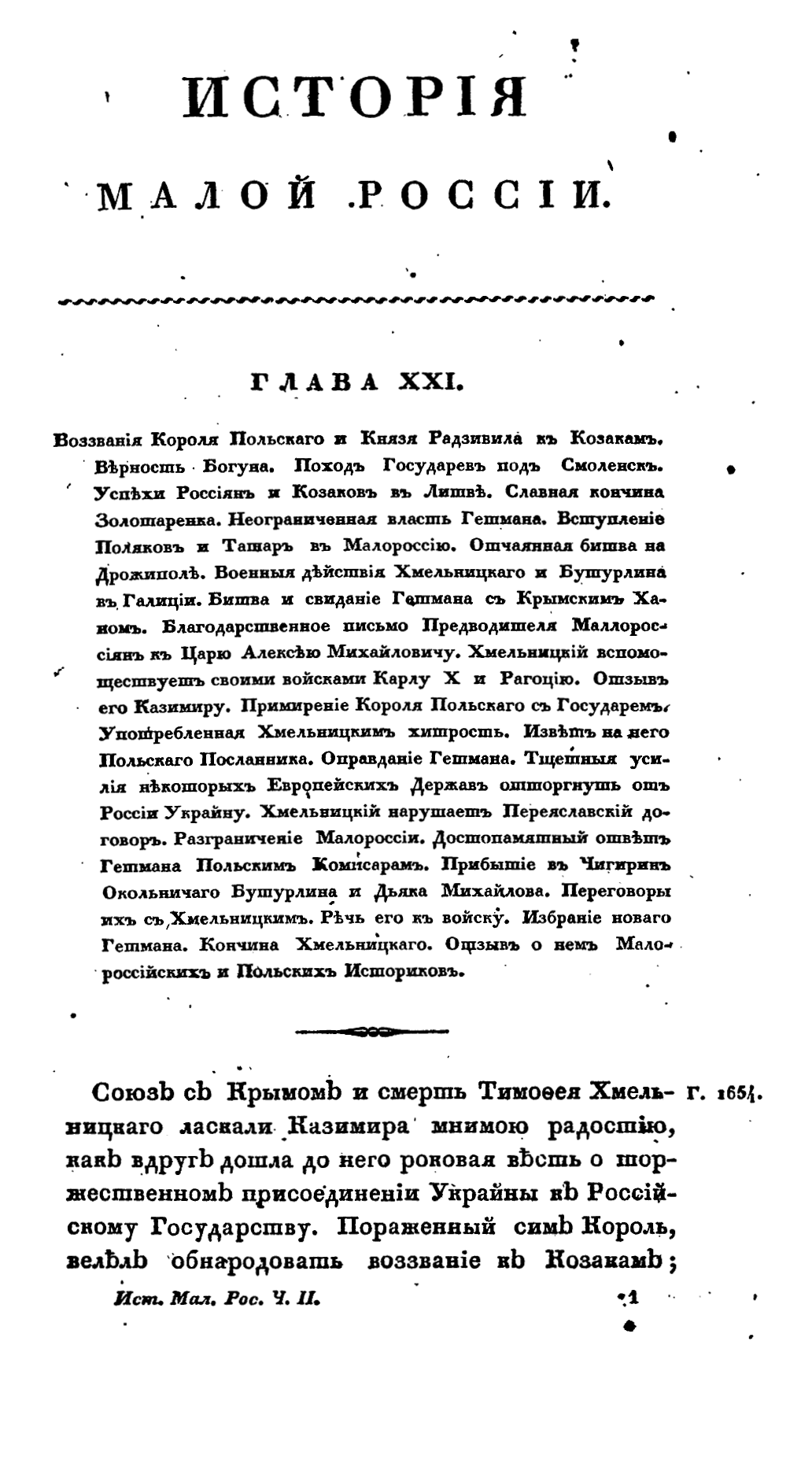 Часть Первая. От водворения славян в сей стран до присоединения оной, в 1654 году, к Российскому государству царем Алексеем Михайловичем