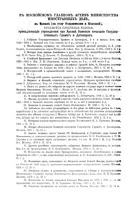 Посмертное издание ключевого труда бессменного (в течение почти 50 лет) археографа и управляющего Московским Главным архивом коллегии иностранных дел - систематизированное изложение документов о посольствах между российскими монархами и европейскими державами, дипломатической переписки и договоров.