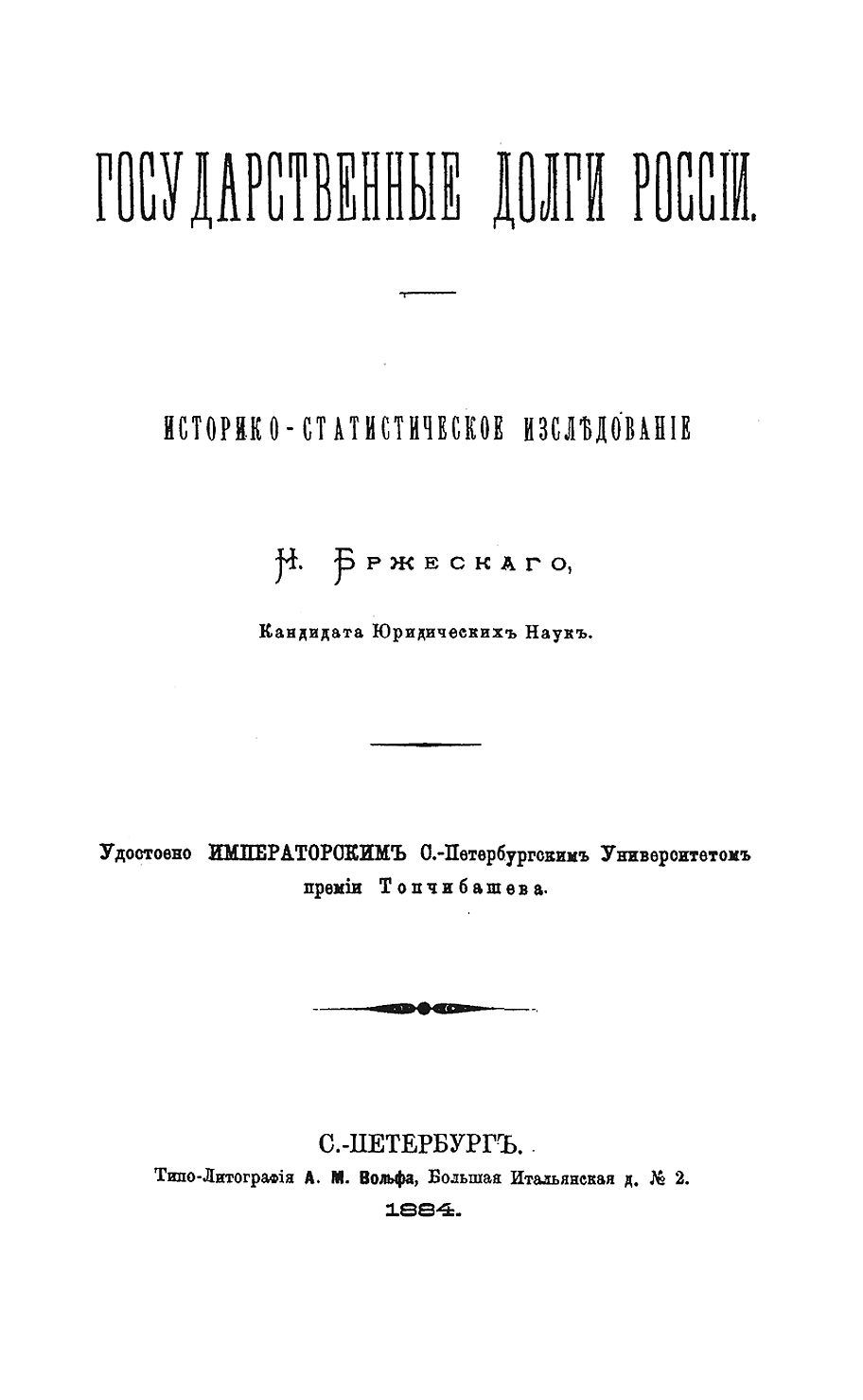 Государственные долги Россiи. Историко-статистическое исзлѣдование
