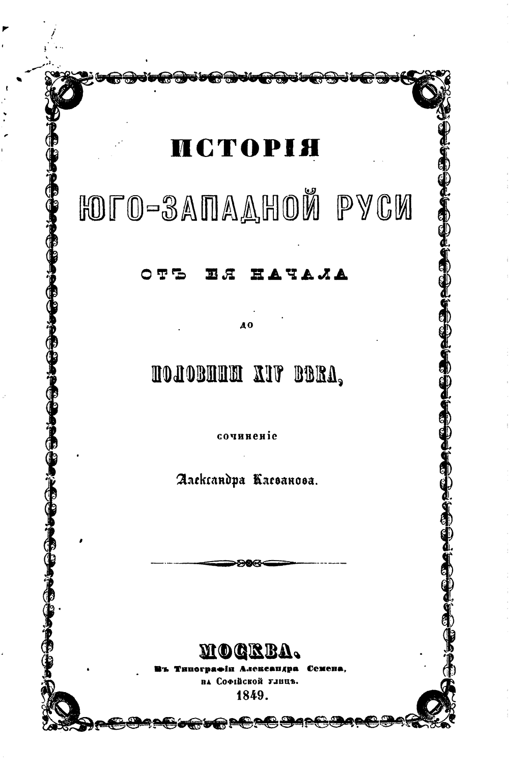 Клеванов ведет «История Юго-Западной Руси» с легендарных античных времен и завершает событиями периода конца ее самобытного существования.