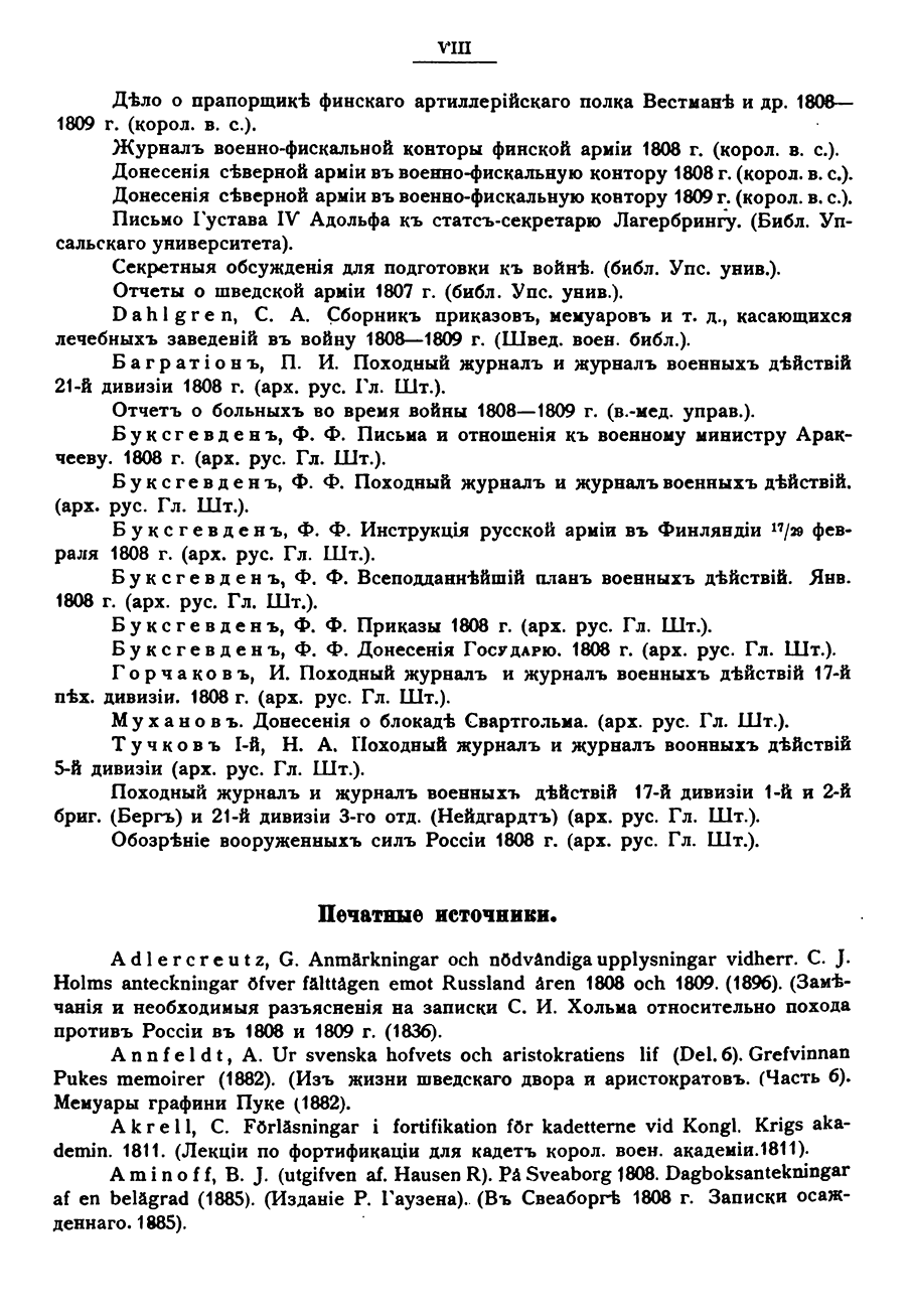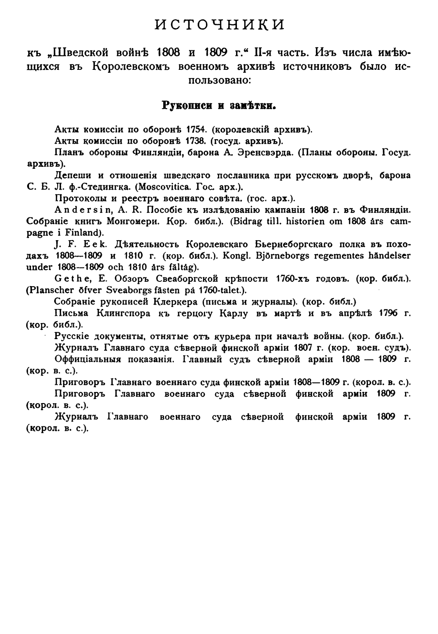 Перевод на русский язык исследования , подготовленного Историческим отделом Шведского генерального щтаба, сделан группой офицеров Российского Генштаба и Финляндского военного округа под руководством полковника А.М. Алексеева