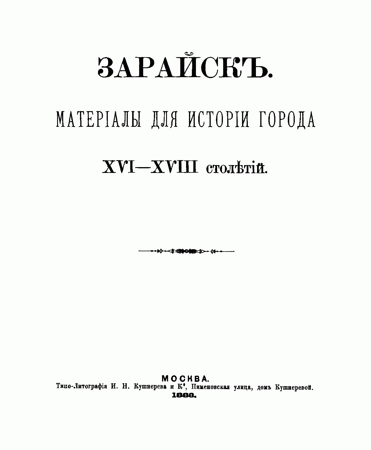 Зарайск. Материалы для истории города XVI-XVIII столетий