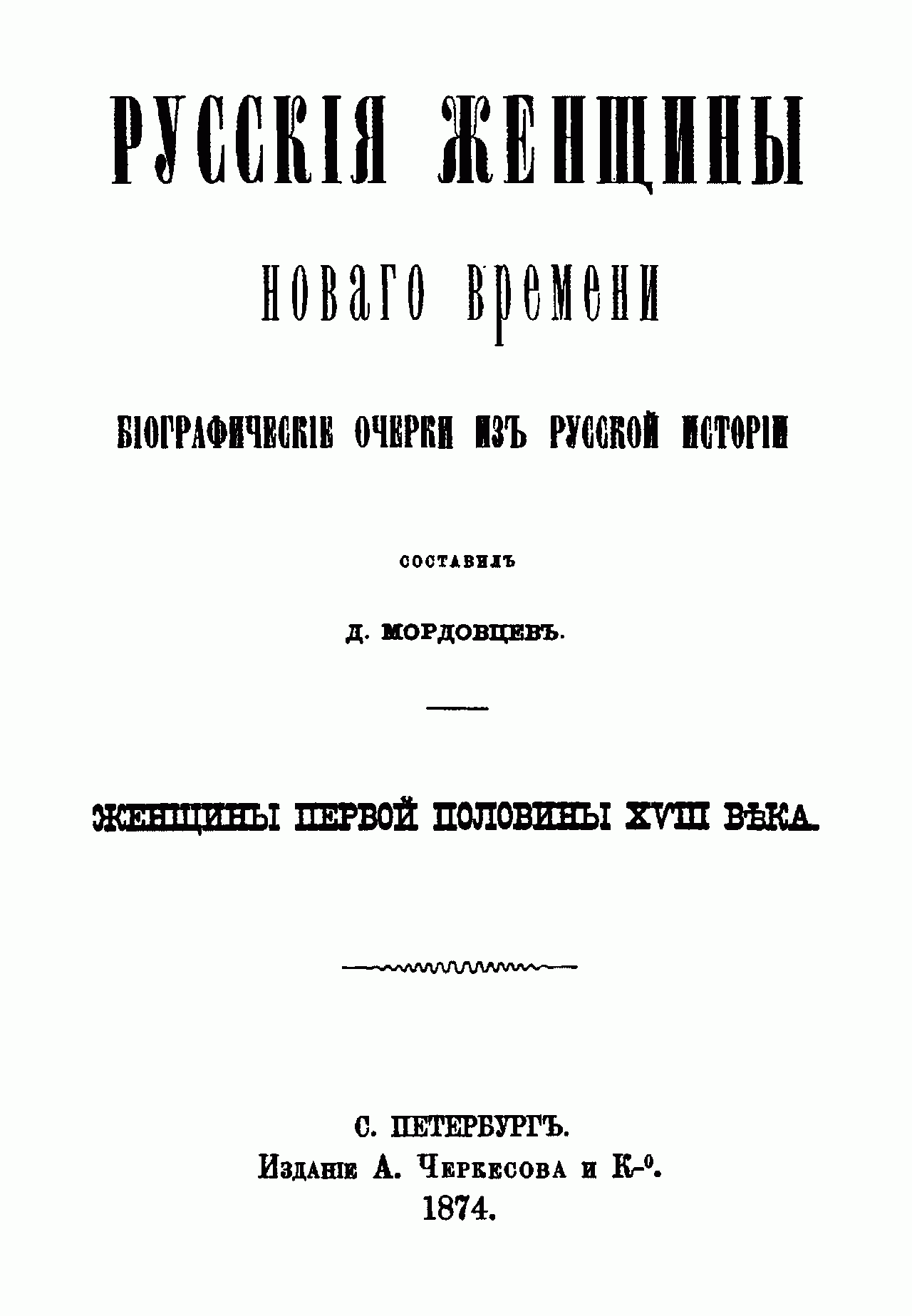 Русскiя женщины Новаго времени. Бiографическiе очерки изъ русской исторiи. Женщины первой половины XVIII вѣка