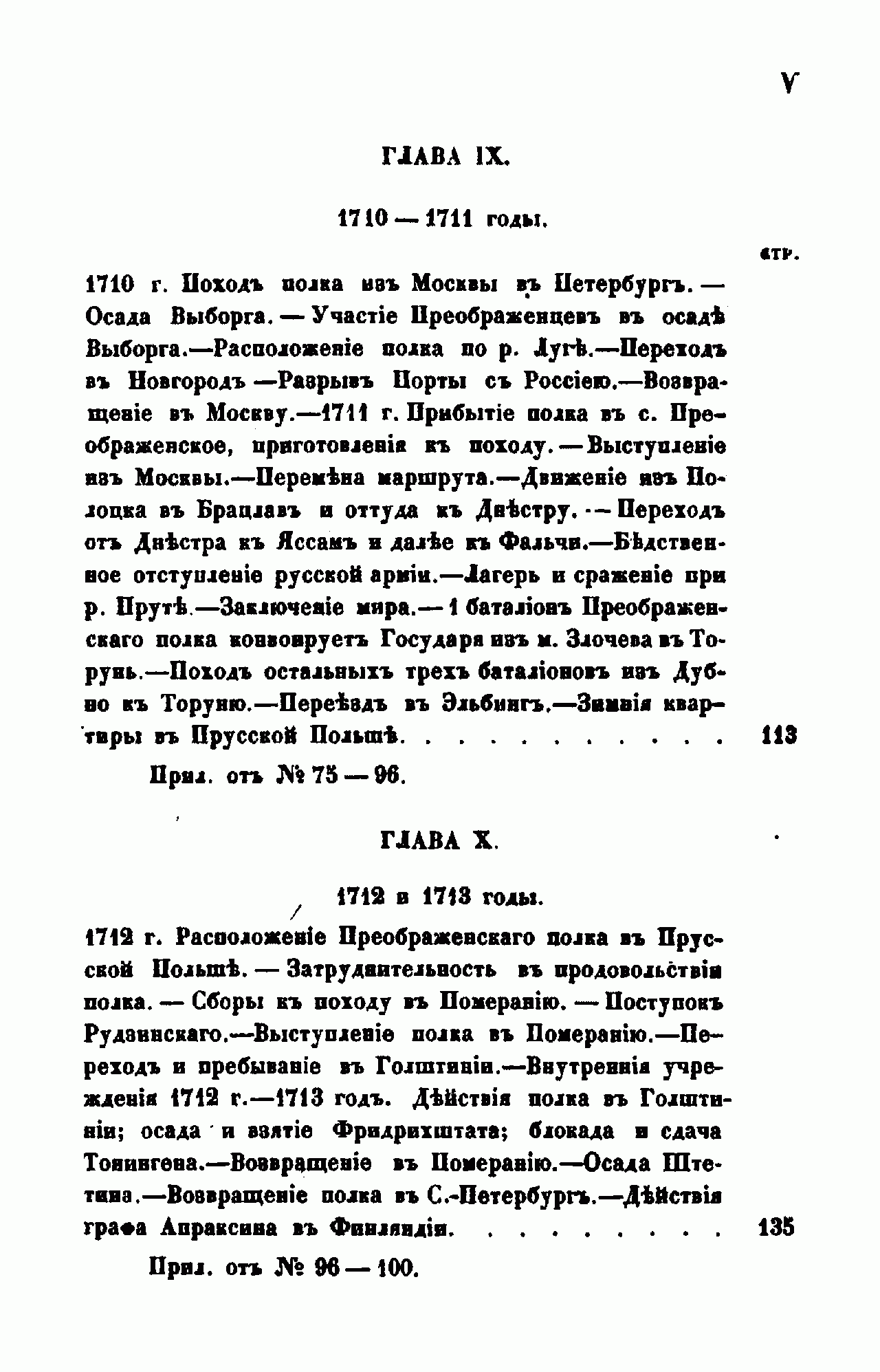 Довольно объемное историческое исследование, подготовленное одним из офицеров полка штабс-капитаном Азанчевским, посвящено начальному периоду истории первого полка русской гвардии, который был создан в 1683 г. по воле юного Петра Великого из числа сверстников «детей боярских» в придворном селе Преображенском под Москвой для «потешных воинских забав». С 1687 г. Преображенский «потешный полк», а также второй полк «потешных», возникший в соседнем селе Семеновском, стали именоваться солдатскими. С началом Северной войны в августе 1700 г. полк впервые официально получил название лейб-гвардии Преображенского. Сам самодержец прошёл все ступени служебной лестницы в этом полку, дослужившись в 1706 г. до звания полковника. С этого времени все российские государи и государыни, занимавшие царский трон, получали это звание и являлись шефами полка. За годы петровского правления лейб-гвардии Преображенский полк превратился в подлинную опору престола и кузницу кадров для рождающейся Империи. Полк, формировавшийся в основном из дворян, принимал участие во всех решающих сражениях и походах 1-й четверти XVIII в. – от «Нарвской конфузии» (1700) до похода в Персию (1722). Об этих событиях подробно рассказывается в этой книге. В ней также опубликовано большое количество документальных материалов о боевой деятельности полка, действовавшего в основном под руководством самого Петра I.
